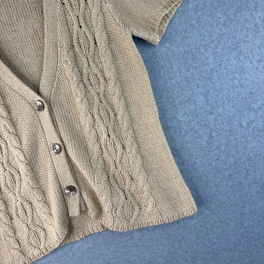 J. Jill Cardigan Sweater Women's Small Tan Short Sleeve Cable Knit Button-Front Description J. Jill Cardigan Sweater Women's Small Tan Short Sleeve Cable Knit Button-Front . View measurements below. Pit to pit 16" Length 23" Sleeve 16" Shoulder to shoulder 9" SKU C29 Product Detail • Brand : J. Jill • Department: Women's • Color : Tan • Type: Sweater Please message me if you have any questions. Please check above for measurements.