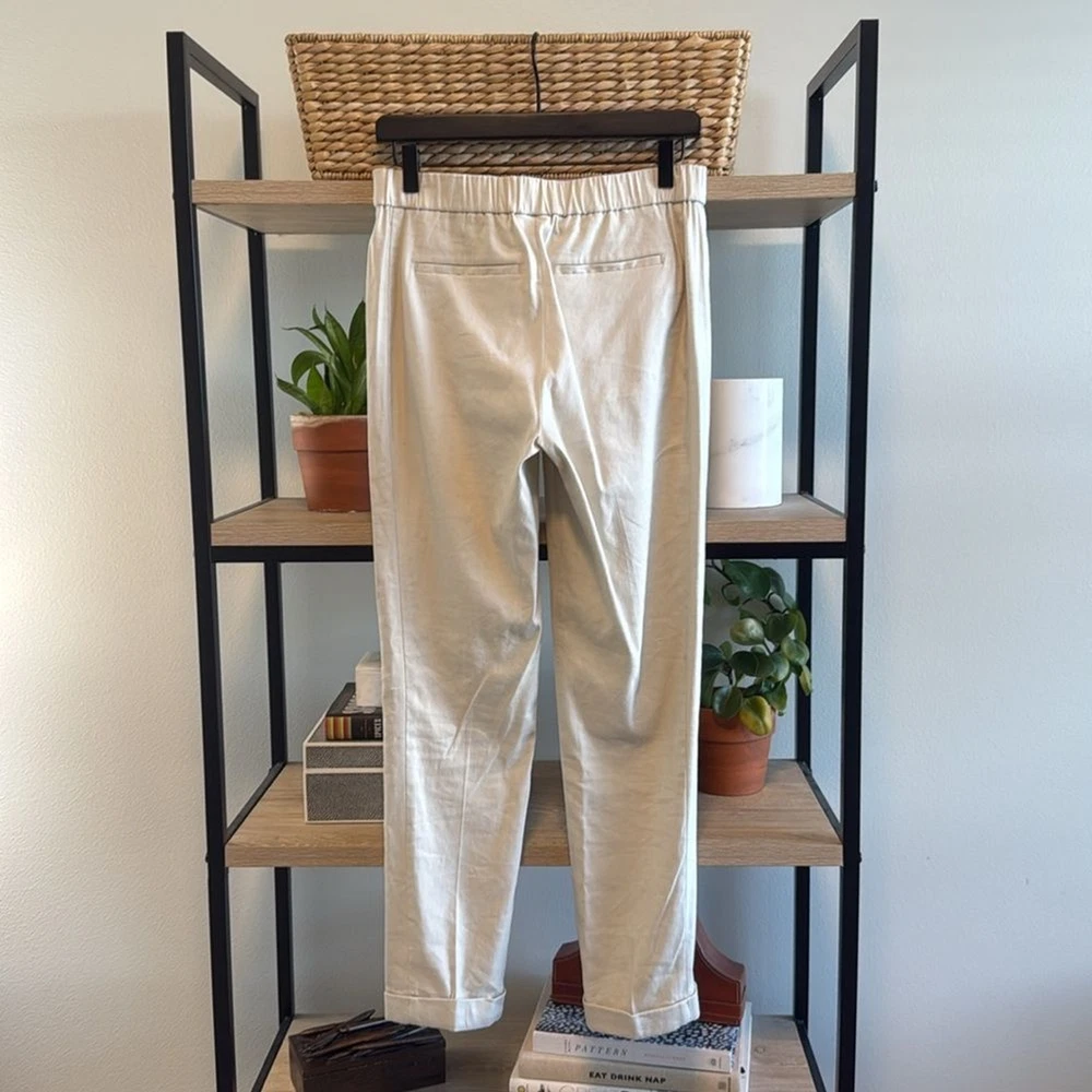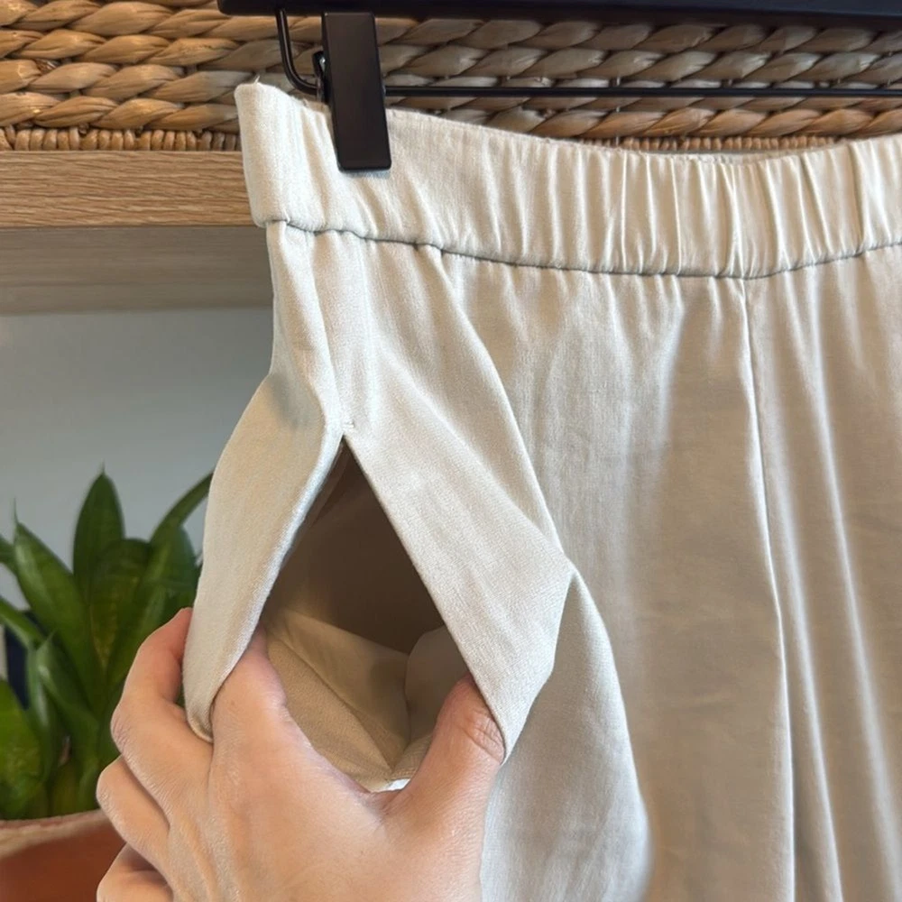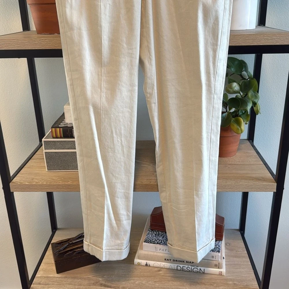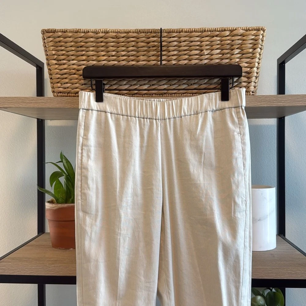 J. Jill Linen Blend Pocket Mid-Rise Cream Ankle Slack Pants, XS EUC- no wear to note/like new. 53% Linen, 45% Viscose Rayon, 2% Spandex light-midweight high quality woven fabric. Rib elastic waistband for effortless on/off. Relaxed comfortable but professional fit. Pockets! Perfect for relaxed but "put together" higher temperatures. Vacation, beach, running errands, everyday, business casual. Measurements taken flat: Waist: 14.75" unstretched (comfortably stretches to over 17" flat) Front Rise: 9.5" Inseam: 28.5" Leg Opening: 6.5"