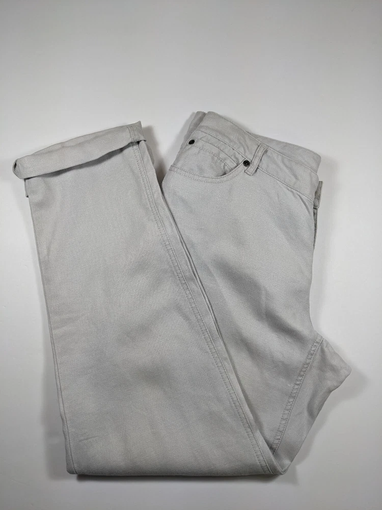 J Jill linen 5-pocket style pants in stone Flat front, button loops, 5-pocket style, slightly tapered leg Fabric Content - 100% linen Care Instructions - Machine wash, tumble dry See photos for condition Size 8 - See photos for measurements - Inseam 30", Waist 32", Rise G2