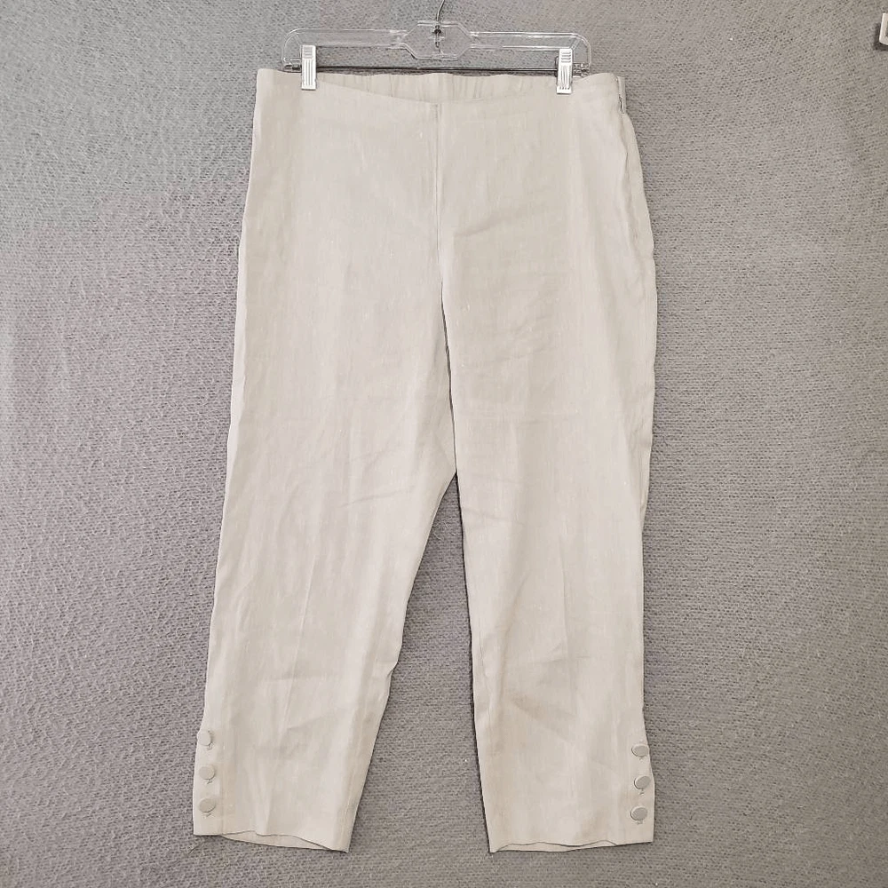 J Jill Love Linen Women's Side Zip Stone Buttons Ankel Cropped Pants M
