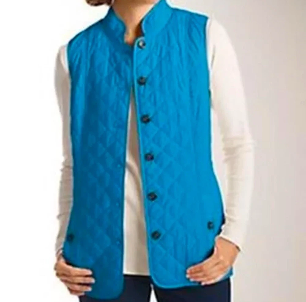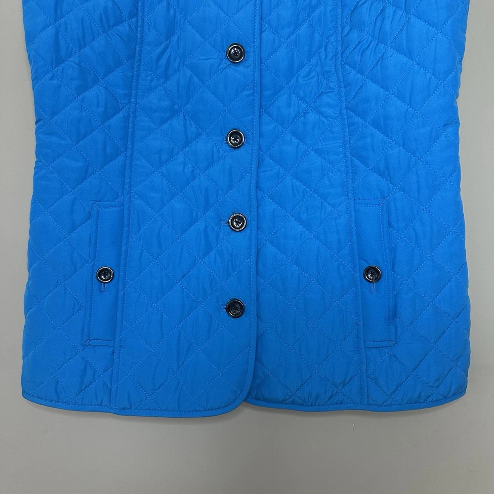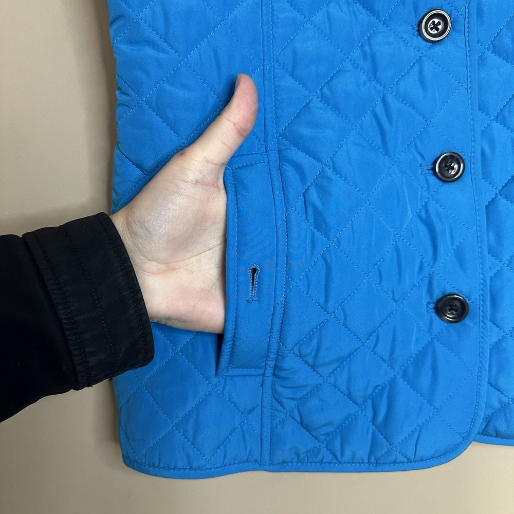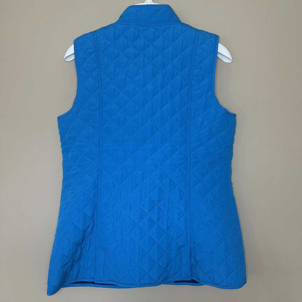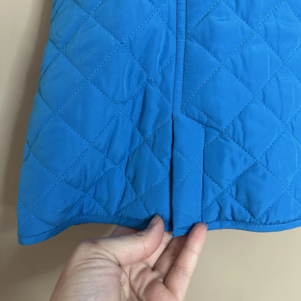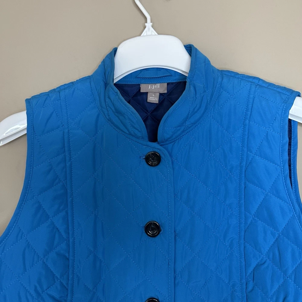 J. Jill Women's Small bright blue quilted vest with pockets button front lined back vents with button snaps excellent condition tags: preppy minimalist old money quiet luxury modest approximate measurements lying flat length: 26" armpit to armpit: 18.5" 📦Packaged with care 📬 I will ship it out within 2 business days 🙂Smoke free home ♥️Offers welcome.