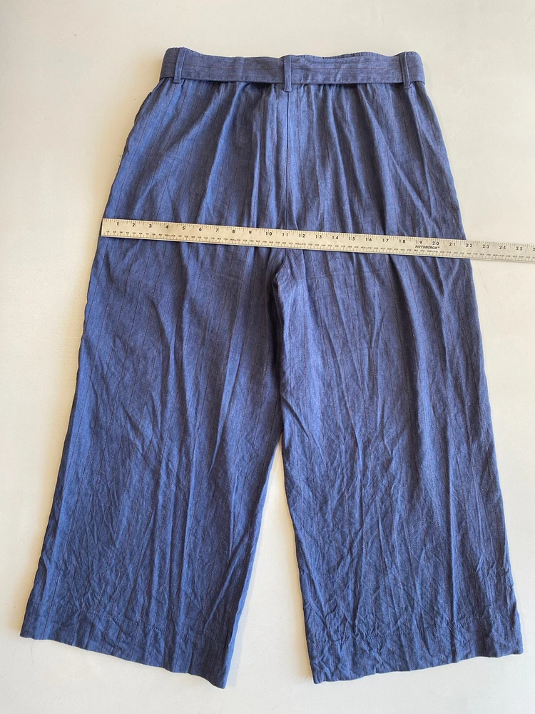 Elevate your wardrobe with these chic J. Jill Women's Linen Stretch Jenna Pants in size L. These blue striped pants feature a comfortable elastic waist and a belted cropped wide-leg design that is perfect for any occasion. The lightweight material is easy to care for and has a stretchy composition of spandex, viscose, and linen. With slash pockets and a flat front, these pants are both stylish and functional. Ideal for summer, fall, or spring, they're a perfect addition to any wardrobe. These pants are a J. Jill Jenna model and were made in Indonesia. Condition of the item is Pre-Owned in great shape! Shipped asap by USPS First Class Mail.