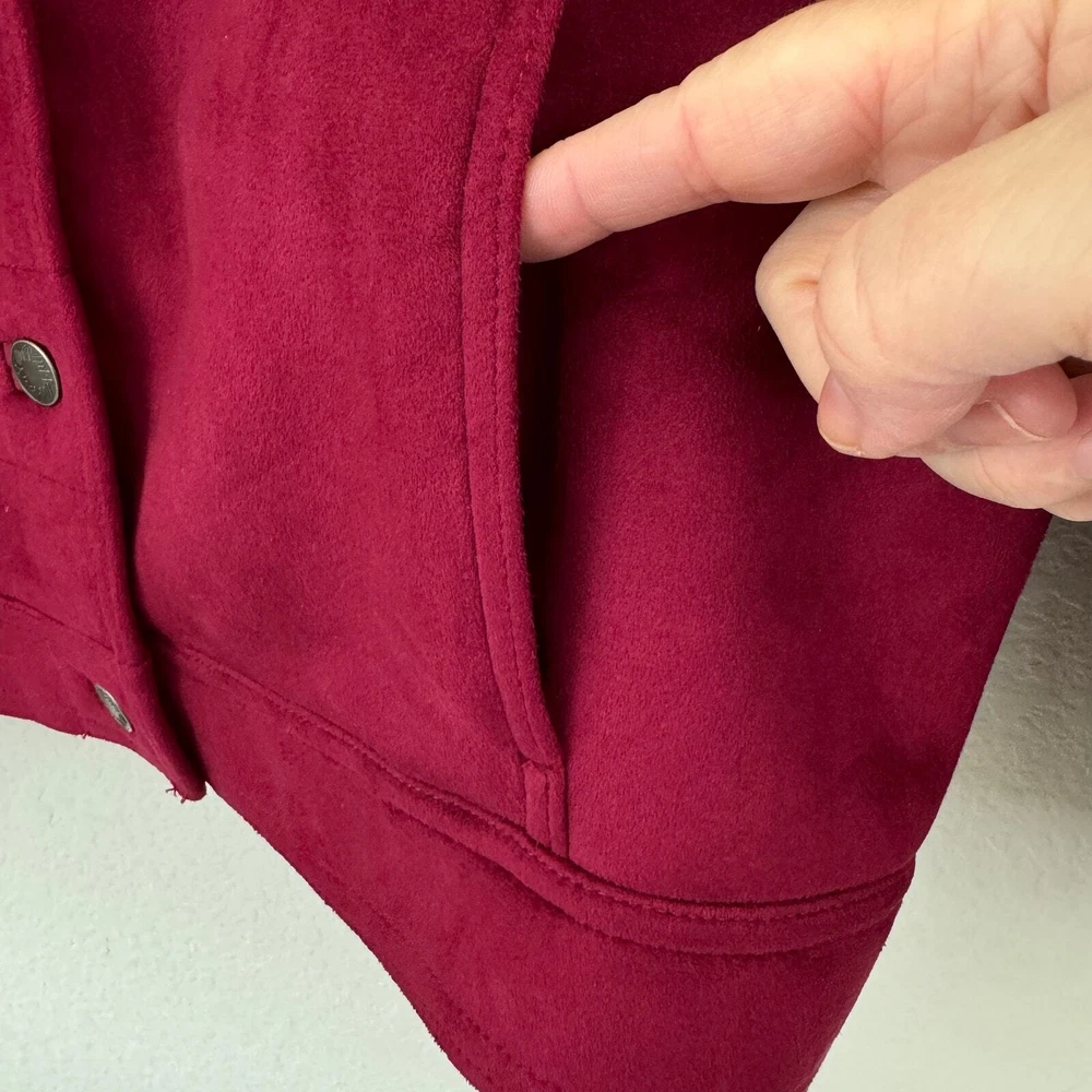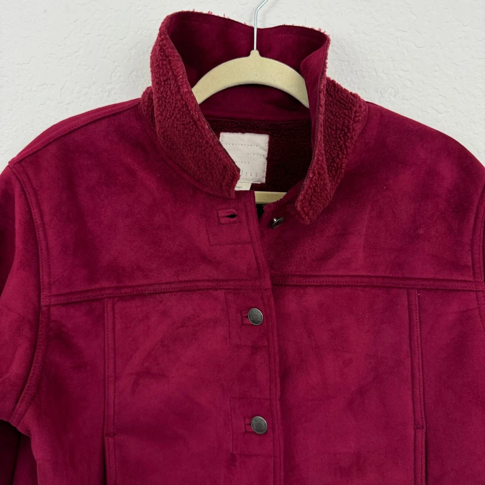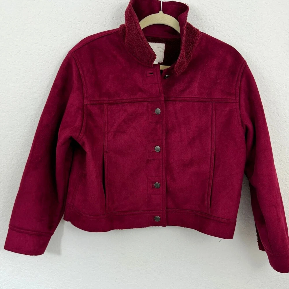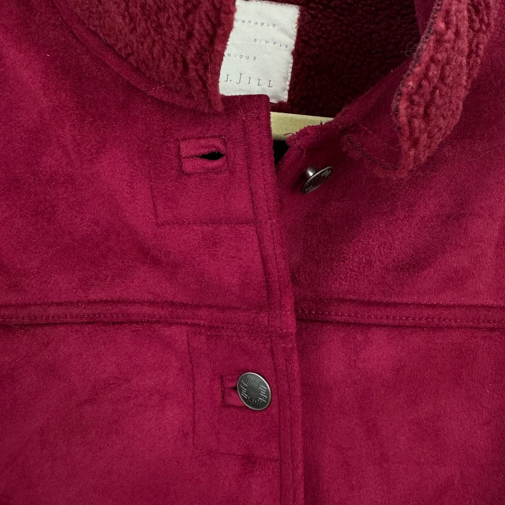 Brand: J. Jill Size: Medium petite Measurements: Please see photos for approximate measurements. Condition: In good pre-loved condition with some normal wear to the fleece material. Color: red Material: poly, acrylic Features: Button front with metal branded button closure Long sleeves with button closure Pockets Stand up collar Tags: fall, winter, cold weather, lodge, cozy, hot cocoa girlie, cabin, cabincore Pre-owned clothing items are properly cleaned, washed, and/or steamed at high heat before listing.