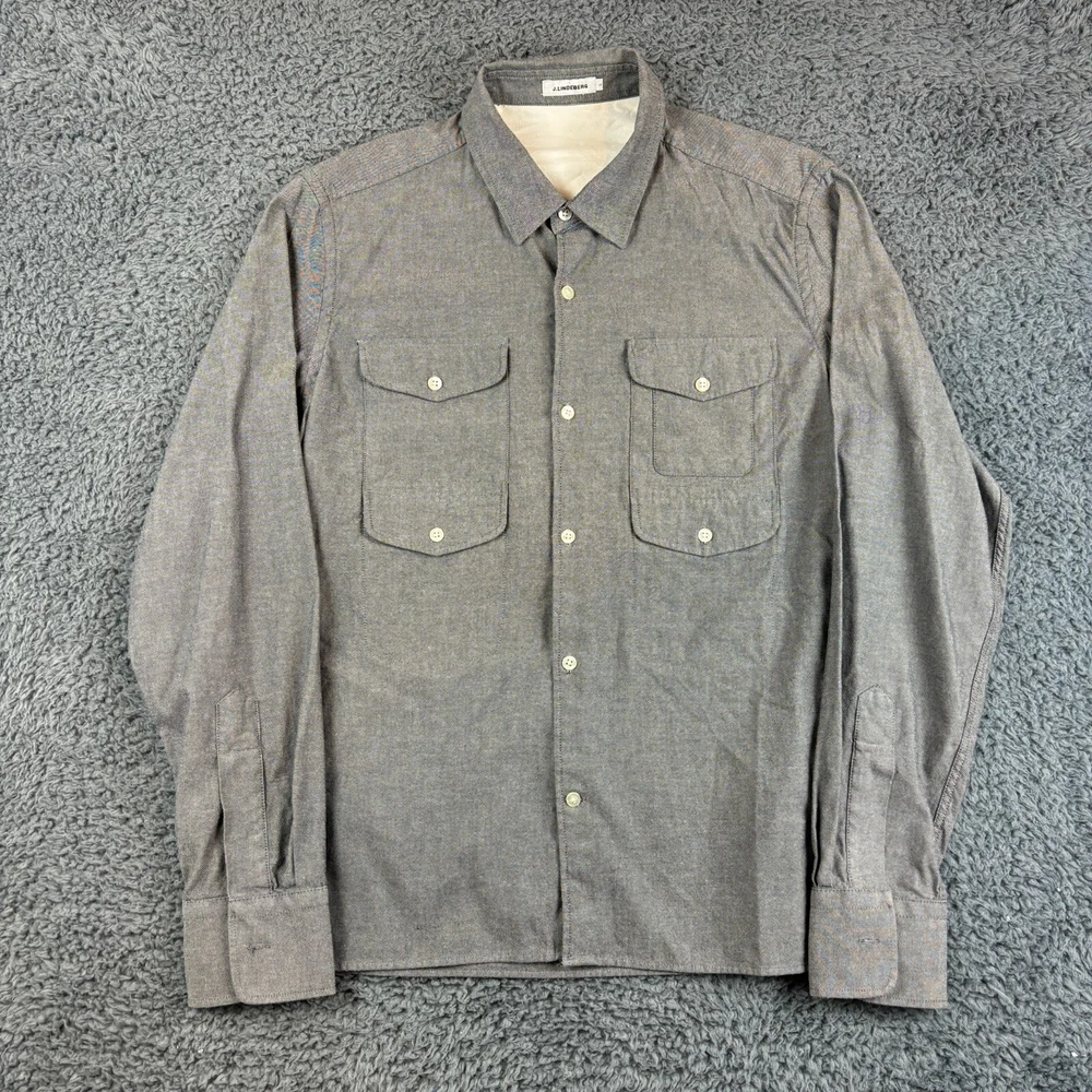 Genuine J.Lindberg Overshirt 4-Pockets Please note the quality of the pictures has been impacted by the camera lighting. Any colour imperfections are not there and only due to lighting. Chest Width (Pit-to-Pit): 21.5" Body Length (Shoulder to tail): 27" Size: Large (L) Excellent used condition. Please note a tiny pin prick hole as seen in the photos. Please note that used items may have some pilling, wear and fading (especially around the collar and other seams). Any notable damage or excessive pilling/wear/fading will be noted. Items washed/cleaned in line with manufacturer guidelines. I will ship this item out via 2-3 Day Mail with a tracking number for confirmation I ship items out EVERY DAY so EXPECT a QUICK delivery! Please feel free to ask any questions you may have I answer most questions instantly!