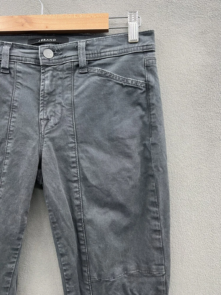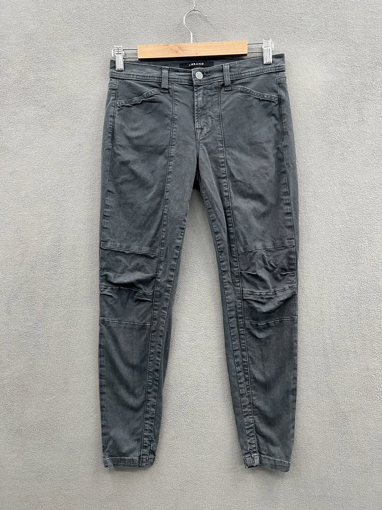 Retail $228 Upgrade your wardrobe with these J Brand utility jeans in a stylish gray color. Designed with a biker, motorcycle, rock, music, grunge, bohemian, and metal theme, these skinny jeans are perfect for any season - winter, summer, fall, or spring. The jeans feature a low rise waist size of 29 inches, a solid pattern, and a slim fit for a flattering silhouette. Made of cotton and elastane, these jeans have a stretch feature that ensures comfort and ease of movement. They have a fabric type of canvas and a fabric wash of medium. The closure is a combination of zip and button for a secure and snug fit. These jeans are machine washable, making them easy to care for.