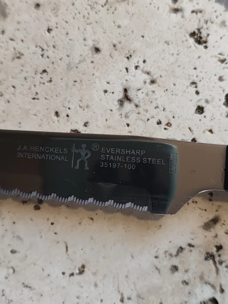 Features: Dishwasher Safe gtin13: Does not apply Type: Steak Knife Locate: Utensils Number of Items in Set: 2 Handle Material: Composite MPN: 35197-100 Material: Stainless Steel Making Method: N/A Blade Length: 5 in UPC: Does not apply Brand: ZWILLING J.A. HENCKELS Personalize: No Set Includes: Steak Knife Blade Edge: Serrated Food Compatibility: Meat Manufacturer Warranty: No Color: Black Country/Region of Manufacture: Unknown