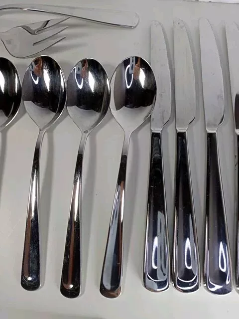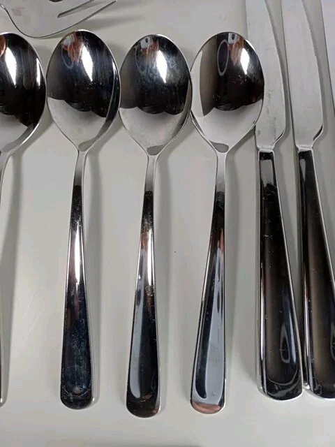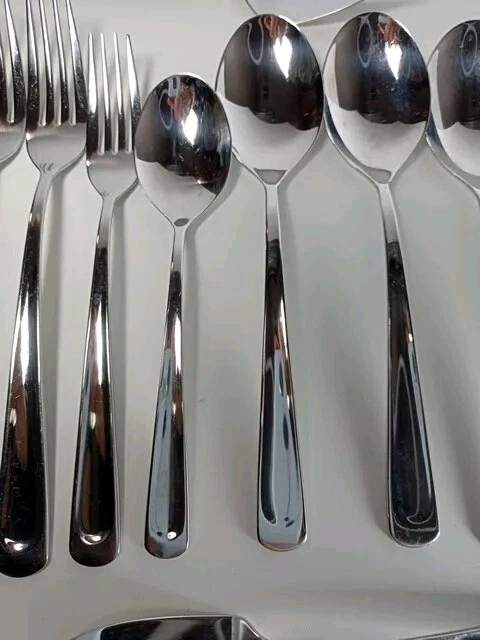 Please check the pattern carefully. This set may or may not be Silvano. It is the best match found. Marked as INOX 6 Knives 4 Large Spoons 1 Small Spoon 1 Small Fork 3 Large Forks 1 Serving Spoon 1 Serving Fork 1 Spreader