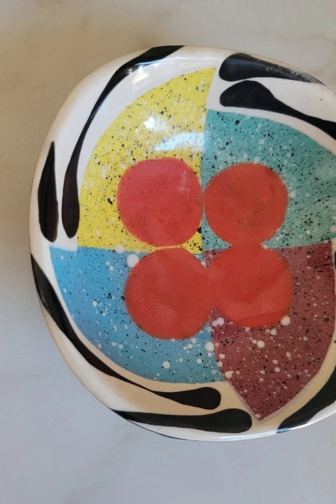 This unique and artistic trinket dish is a perfect addition to your collection. Signed by the renowned potter Jack Charney, this earthenware square plate is made with great care and precision. The multicolored design is eye-catching and adds a touch of elegance to any room. The dish is perfect for holding candy, relish, or other small items, and its sturdy construction ensures it will last for years to come. Made in the United States, this pottery dish is a true work of art that will be treasured for years to come. No damage has been noted on this piece! E- mail me with questions! Thanks for checking out my auctions!