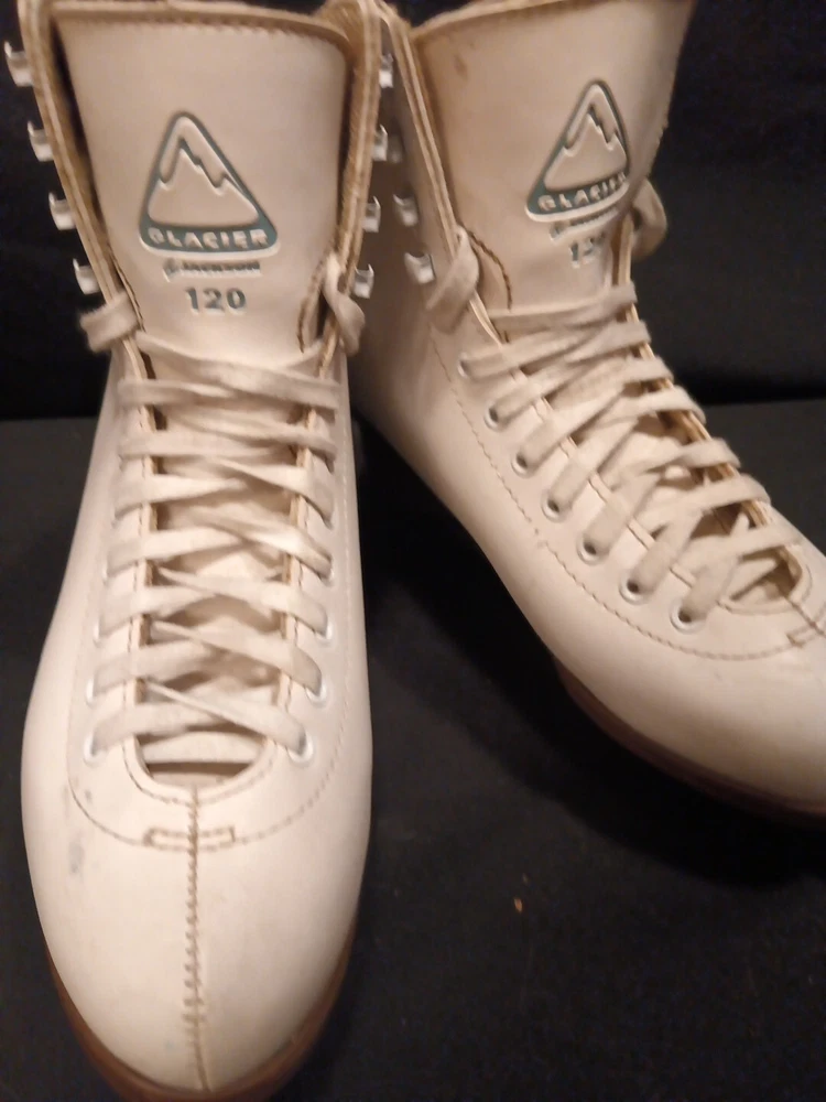 Lace up a pair of these Jackson Glacier 120 ice skates and hit the ice in style. With a hard shell type and stiff flex, these figure skates are perfect for any level of ice skater. The size 6 women's blades are made of high-quality leather and come from Taiwan, ensuring durability and comfort. The white color and vintage design add a touch of elegance to these ice skates, making them perfect for both casual and competitive ice skating. Whether you're a seasoned pro or just starting out, these Jackson Glacier 120 ice skates are a great choice for anyone looking to glide across the ice with ease.