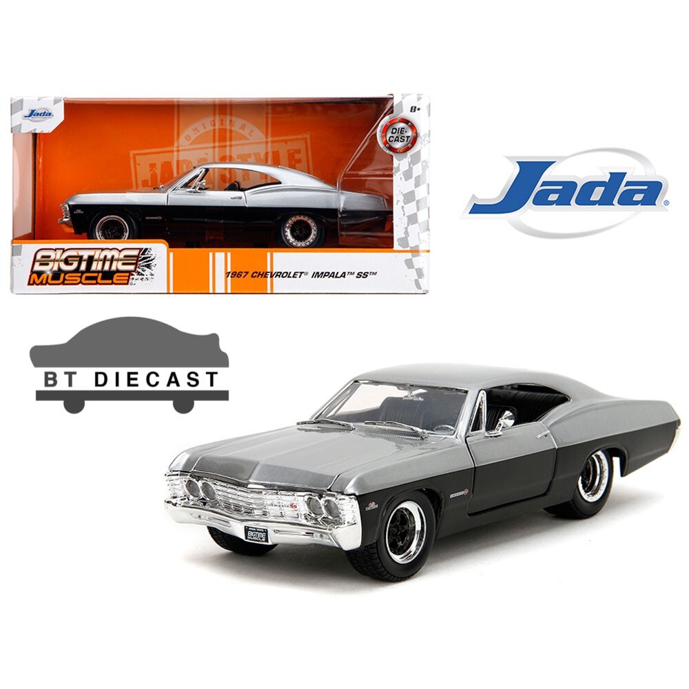 Description BIGTIME MUSCLE 1967 CHEVROLET IMPALA SS 1/24 Opening : HOOD , DOORS Length : 8" Color : SILVER / BLACK Made By : JADA Shipping and Handling If a package that weighs more than 2 pounds, is shipped to P.O. BOX, FPO, APO, HI, AK, PR, GU, and VI, every additional item will cost an extra $7.00. Please inquire for International shipping rates and combined shipping fee before bidding. Contact us to arrange Express shipments Company Policy All sales are final. The buyer will need to pay for all shipping fees (with a 25% restocking fee) if the purchase is to be changed. We offer a 14 day return policy for buyers who pay for the return shipping fee. Please contact us before you plan to return any item and we will email you the details. Please request an invoice after placing your bid on the auction. In the case of an unpaid item, we will initiate a process with eBay to recover fees for incomplete transactions. Please include the item number with any specific questions regarding the item. Bidding indicates understanding and agreement with all the terms and conditions stated in this listing. Feel free to ask any questions you may have before bidding on these listings. We will do our best to reply as soon as possible.
