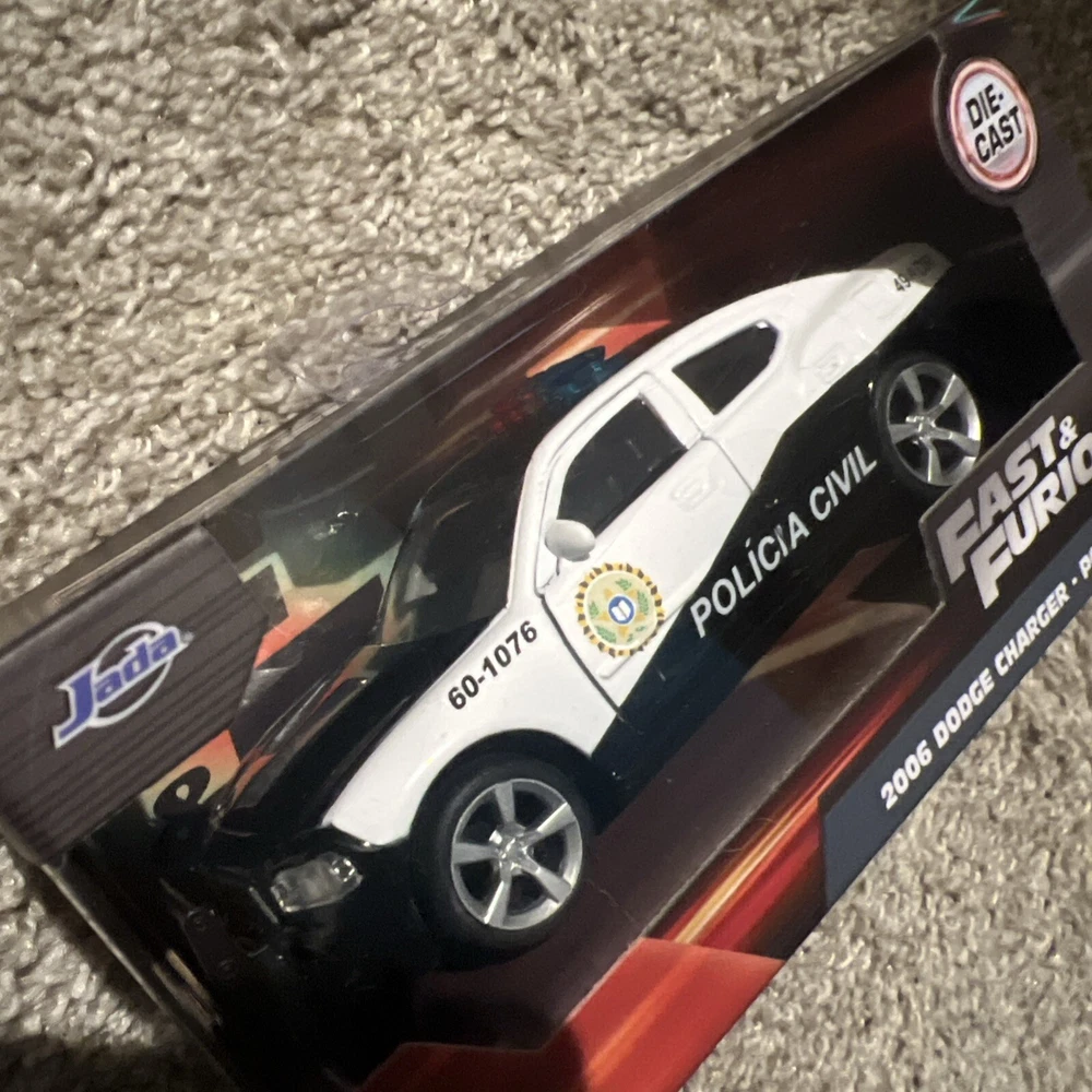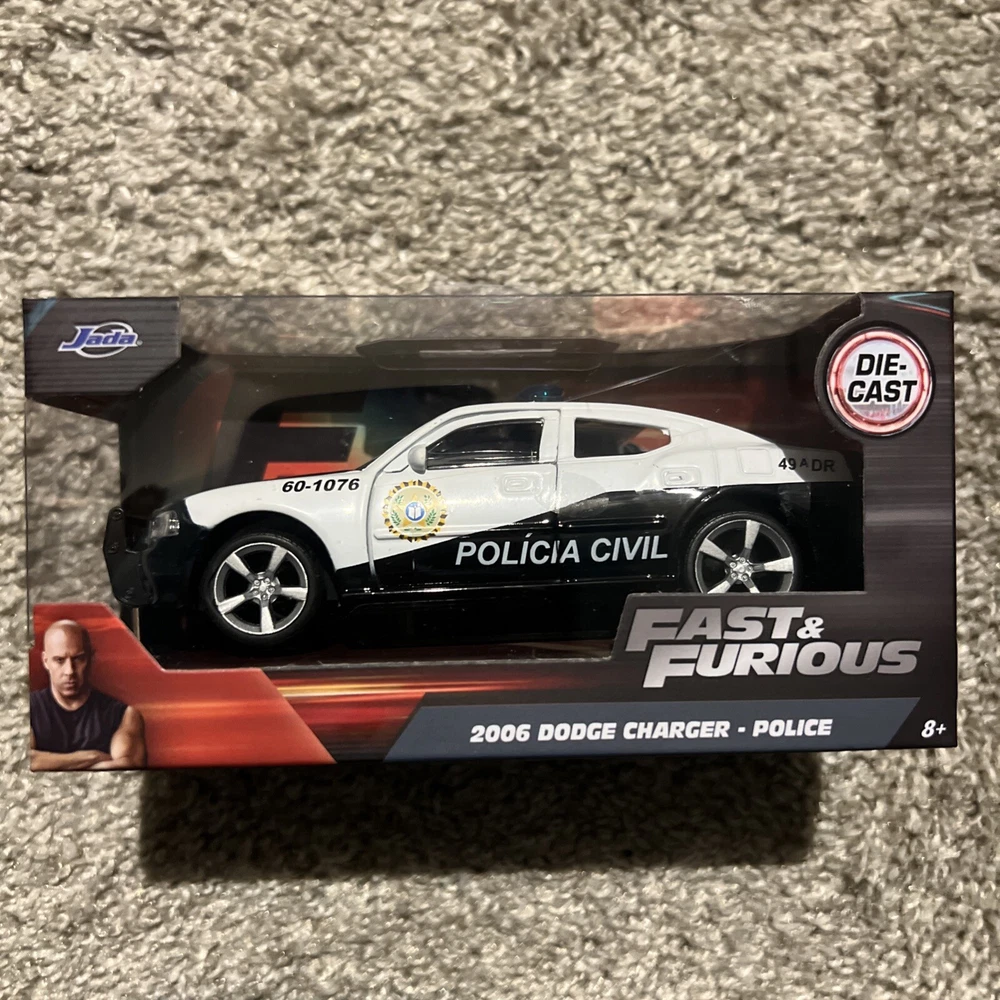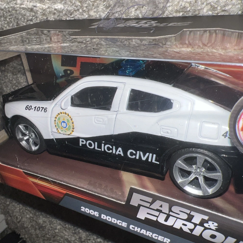 The Jada Fast & Furious 2006 Dodge Charger Police Policia Civil Car is a 1:32 scale diecast model in black and white colors. This special edition car from the Fast & Furious series features a Charger model with police markings, making it a unique addition to any collection or playtime scenario. Released in 2023, this toy appeals to both boys and girls who enjoy cars and the Fast & Furious franchise.