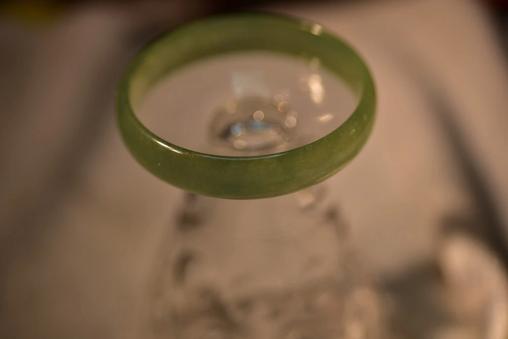 Natural-Appearance Icy Light Green Small JADEITE Jade Bangle, Simply Glowing Elegant light green Jadeite bangle smaller sized 52mm inner diameter, with a D profile and which simply glows in light. Measurements: · Inner diameter: 52.00 mm · Outer diameter: 61.42 mm · Thickness: approx. 7.5 mm · Height: 11.72mm · Weight: 24 grams Testing & observations: • Specific gravity measured at approximately 3.33 , consistent with Jadeite Jade. • Produces a ringing tone when gently suspended and tapped • Backlit inspection shows natural cloudy texture with no visible polymer webbing • Color is soft, cloudy crystalline light green typical of natural Jadeite This piece has not been lab certified and is sold as-is; however, all observations are consistent with natural Jadeite. This piece may have inclusions, other minerals, discoloration, normal vein fissures, imperfect crystals and other natural imperfections. The best description and observations of this piece are in the photographs. Please review all photos carefully and feel free to ask questions. Ships securely and insured.