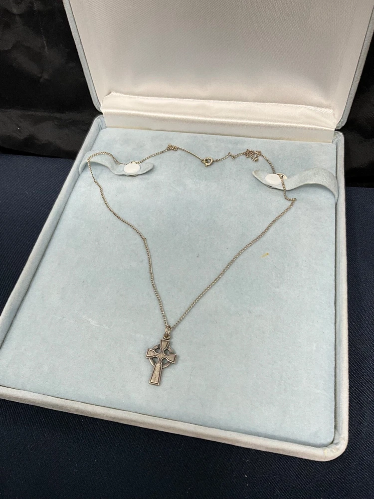 You are bidding on JAMES AVERY 925 Sterling Silver Cross Pendant 3/4”. Overall in excellent condition. Not showing any signs of wear. Marked on the underside. Cross measures approximately 3/4” long. Chain is marked sterling, measures approx 20” end to end.