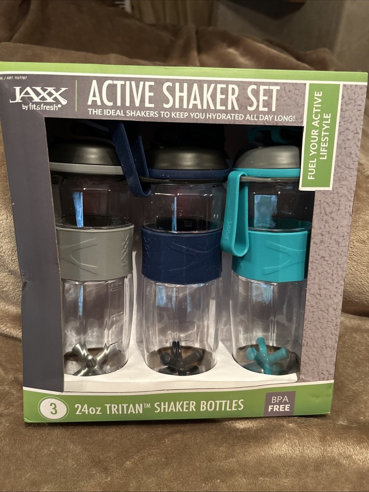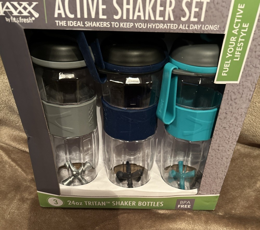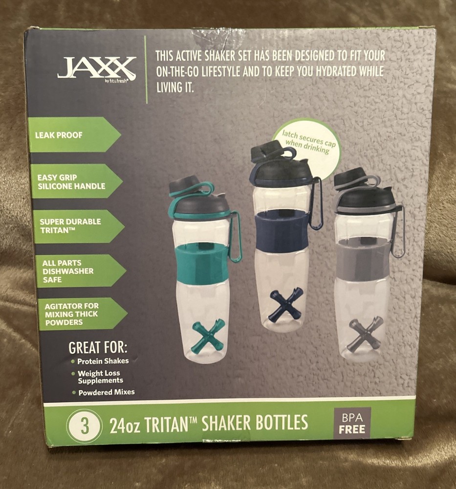 JAXX BUY FIT & FRESH ACTIVE SHAKER SET OF 3 -24 OUNCE TRITAN SHAKER BOTTLES.