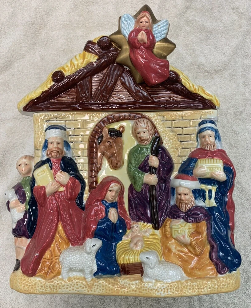 Brand: Jay Imports Type: Cookie Jar Occasion: Christmas Material: Ceramic Color: Multicolor Theme: Nativity Scene
