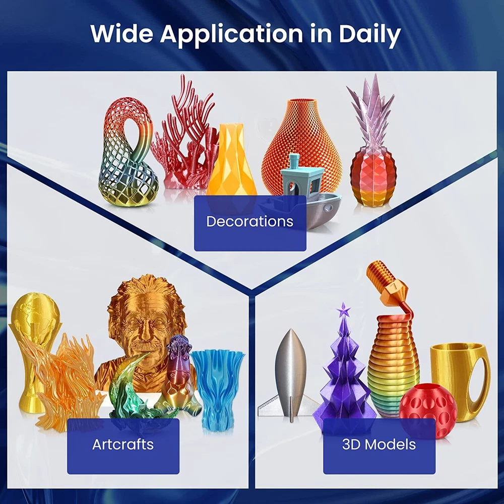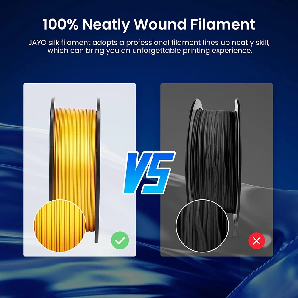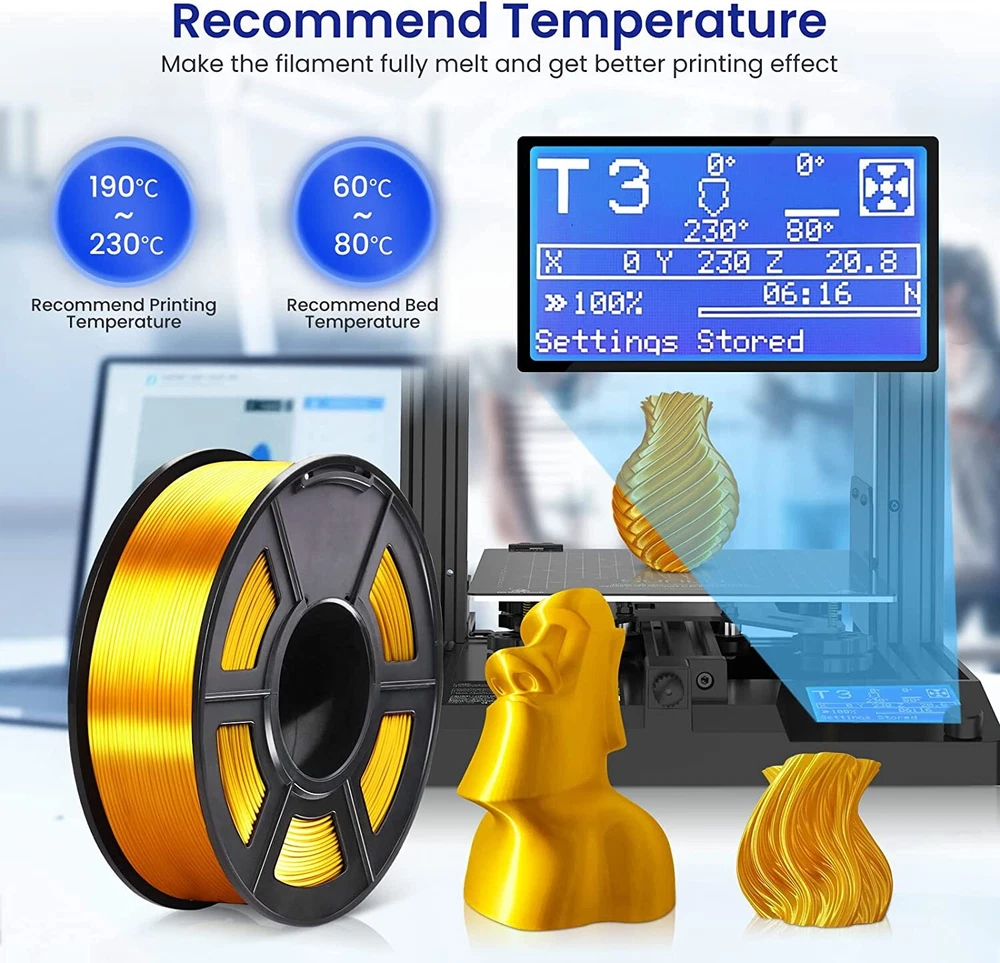 We are in the transitional period of switching to plastic spools. You may receive both plastic and cardboard versions of the spools. Filament PLA PLA+ PETG ABS PLA Meta PLA Matte PLA High-Speed Filament Diameter 1,75mm 1,75mm 1,75mm 1,75mm 1,75mm 1,75mm 1,75mm Tolerance ±0.02mm ±0.02mm ±0.02mm ±0.03mm ±0.02mm ±0.03mm ±0.02mm Printing Temperature 200-210℃ 205-215℃ 220-230℃ 250-260℃ 185-195℃ 205-215℃ 190-210℃ Platform Temperature 50-60℃ 50-60℃ 60-70℃ 80-100℃ 50-60℃ 50-60℃ 50-60℃ Printing Speed 50-100MM/s 50-100MM/s 40-60MM/s 40-60MM/s 50-150MM/s 50-100MM/s 190-210℃, 50-150mm/s 210-230℃, 150-300mm/s 230-260℃, 300-600mm/s Heat Deflection Temperature 53℃ 53℃ 63℃ 84℃ 53℃ 53℃ 53℃ Elongation at Break 3.1% 3.6% 5.3% 7.8% 17% 9.6% 3.6% Net Weight 1.1 KG 1.1 KG 1.1 KG 0.65 KG 1 KG 1.1 KG 1.1 KG 1.1 KG Filament PLA Luminous (Glow in the Dark) PLA Carbon Fiber PLA Marble WOOD Silk PLA+ Easy ABS TPU (95A) TPU SILK (98A) Filament Diameter 1,75mm 1,75mm 1,75mm 1,75mm 1,75mm 1,75mm 1,75mm 1,75mm Tolerance ±0.02mm ±0.02mm ±0.03mm ±0.03mm ±0.02mm ±0.03mm ±0.03mm ±0.03mm Printing Temperature 200-210℃ 215-225℃ 210-220℃ 205-215℃ 205-215℃ 225-235℃ 195-205℃ 210-220℃ Platform Temperature 50-60℃ 50-60℃ 50-60℃ 50-60℃ 50-60℃ 60-70℃ 50-60℃ 50-60℃ Printing Speed 40-60mm/s 40-60MM/s 40-60MM/s 40-60MM/s 40-60MM/s 40-60MM/s Direct Drive Extrusion: 40MM/s Bowden Extrusion: 20MM/s Direct Drive Extrusion: 50MM/s Bowden Extrusion: 30MM/s Heat Deflection Temperature 53℃ 53℃ 53℃ 53℃ 53℃ 57.9℃ 52℃ 131℃ Elongation at Break 21% 4.1% 3.1% 8.1% 6.3% 20% 536% 436% Net Weight 1.1 KG 1.1 KG 1.1 KG 1.1 KG 1.1 KG 0.65 KG 0.5 KG 1.1 KG We have upgraded the production process of our filaments. The following filaments are now 100% neatly wound - PLA / PLA+ / PLA Meta / SILK PLA+ / PETG . (ABS / TPU / PLA Marble / PLA Twinkling is not included.) Compatible with any 3D Printer that uses 1.75mm diameter filament including some models for your reference AirWolf ColorFabb Dremel MakerBot PowerSpec Simplify3D Aleph Objects CraftBot e-NABLE Makergear Printrbot SUNLU Anycubic CraftUnique E3D Markforged Prusa Ultimaker Beeverycreative CubePro FlashForge New Matter Prusa Research XYZprinting BigBox Cubicon Kossel Ooznest Robo 3D Zenith CEL Doob Lulzbot OrdBot SeeMeCNC Zortrax
