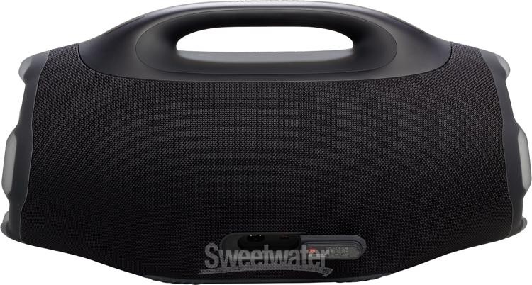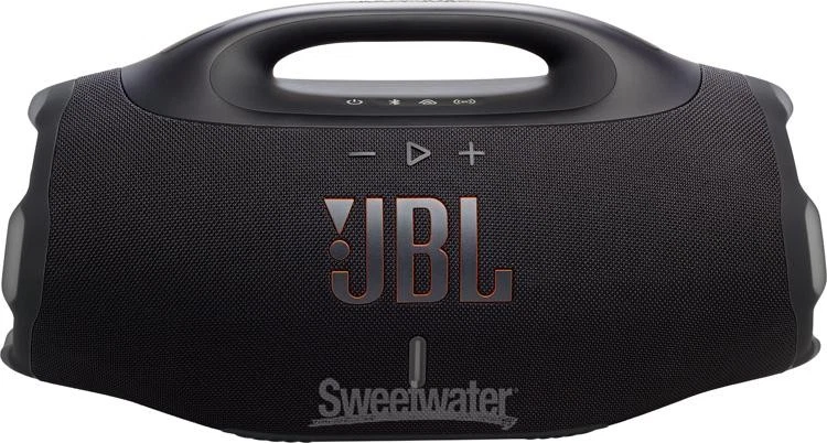 Portable JBL Sound with Plenty of Extra Kick From home jams to poolside parties and roadtrips, turn the music up in style with the JBL Lifestyle Boombox 4. Boasting a redesigned woofer, tweeter, and radiator system, the Boombox 4 delivers upgraded sonics with JBL's signature sonic standards. Indeed, you'll enjoy crystal-clear sound via onboard lossless playback. Meanwhile, dual Bass Boost modes let you tailor the low end to your space, while Auracast compatibility makes it easy to expand your sound, if needed. Lastly, the Boombox 4 equips you with 28 hours of continuous playtime, ensuring the music will keep playing until the party ends.Take the music anywhere The Boombox 4 demonstrates JBL’s unwavering commitment to sound quality. Its dual woofers, tweeters, and three passive radiators deliver authentic, full-bodied playback for music, movies, and podcasts. Users at Sweetwater find that the built-in handle and lightweight design make it easy to take Sweetwater is an Authorized JBL Dealer Genuine New Item Sweetwater's 2-year warranty JBL Boombox 4 Bluetooth Speaker - Black Wireless Bluetooth Speaker with 2 Bass Boost Modes, Multi-speaker Connectivity, and IP68 Water and Dust Protection - Black Portable JBL Sound with Plenty of Extra Kick From home jams to poolside parties and roadtrips, turn the music up in style with the JBL Lifestyle Boombox 4. Boasting a redesigned woofer, tweeter, and radiator system, the Boombox 4 delivers upgraded sonics with JBL's signature sonic standards. Indeed, you'll enjoy crystal-clear sound via onboard lossless playback. Meanwhile, dual Bass Boost modes let you tailor the low end to your space, while Auracast compatibility makes it easy to expand your sound, if needed. Lastly, the Boombox 4 equips you with 28 hours of continuous playtime, ensuring the music will keep playing until the party ends. Take the music anywhere The Boombox 4 demonstrates JBL’s unwavering commitment to sound quality. Its dual woofers, tweeters, and three passive radiators deliver authentic, full-bodied playback for music, movies, and podcasts. Users at Sweetwater find that the built-in handle and lightweight design make it easy to take anywhere — around the house, on vacation, or wherever big sound is needed. With IP68-rated dustproof and waterproof protection, the Boombox 4 is built to perform in any environment. Bring on the bass and more speakers Known for their responsive low-end profile, JBL Lifestyle's Boombox 4 speakers push the envelope of modern bass control. Two separate Bass Boost modes make it a cinch to match the speaker's response to the vibe of your party, whether you need a vibrant kick to jam out or require a deeper, dynamic thump to keep your partygoers moving on the dance floor. Need even more power for a louder stereo output? No problem. Onboard Auracast multi-speaker connectivity makes it seamless to attach your output to multiple devices, keeping your sound stage wide while maintaining a suitable volume for larger events. JBL Lifestyle Boombox 4 Features: Portable boombox with rich JBL sound and user-friendly controls 2 woofers, 2 tweeters, and 3 passive radiators emit full-bodied sound with plenty of punch AI Sound Boost analyzes your music, adjusting sound in real time to provide an optimal output anytime, anywhere Lossless audio playback for authentic, undisturbed sound Easily fine-tune bass response via 2 onboard Bass Boost settings Connect multiple speakers for stereo play via built-in Auracast compatibility IP68-rated water- and dustproof protection ensures suitable play in nearly any environment Up to 28 hrs. of playtime to keep your jams within reach all day long Bluetooth v5.3 compatible for modern playback support Specification Detail Powered Yes Total Power 210W RMS (2 x 65W woofer, 2 x 40W tweeter) Speaker Configuration 2 x 4.84" Woofers, 2 x 0.78" Tweeters, 1 x Racetrack Passive Radiator USB 1 x USB-C (power in/out, audio in) Bluetooth v5.4 Frequency Response 37Hz to 20kHz Pairing Modes Auracast Additional Features Power Bank Functionality Software JBL Portable (iOS/android) Power Source Replaceable Li-ion Battery, C7 AC Input (cable included), USB Powered Battery Life Up to 28 Hours Standard Use, Up to 34 Hours with Playtime Boost Settings (approx.) Enclosure Type IP68: Dust-proof, Waterproof up to 4.9' Depth Enclosure Material Recycled Plastic/Fabirc Application Indoor/Outdoor Color Black Height 10.23" Width 20.07" Depth 8.26" Weight 12.98 lbs RETURN INFORMATION We want you to be completely happy with your purchase from Sweetwater. If you are not satisfied with your product, you may return it for a refund of the purchase price within 30 days. If your purchase was eligible for Free Shipping, the shipping cost will be deducted from your credit or refund. Returns must be in the complete and original packaging with all accessories and complete documentation (Owner's Manual, warranty card, quick start guides, etc.), show no signs of wear or use, and include a Return Authorization number or be subject to a restocking fee. Fast, FREE Shipping! Nearly every order received by 3PM Eastern ships the SAME DAY! FREE shipping to lower 48 states. Our central location reaches most states in 1-4 business days 99.95% warehouse accuracy We are proud to provide some of the fastest turnaround times on eBay. We use FedEx or UPS for most items, and USPS for smaller items. Residents of Hawaii, Alaska, and Puerto Rico should contact us for a shipping quote. PLEASE NOTE: We cannot ship large items to PO boxes, please provide an alternate address. If you have questions, feel free to contact us. Buy with confidence! Sweetwater's been selling on eBay since 2001, with 99.9% positive feedback! More than 30 years in business World-class customer service Fast, FREE shipping Free 2-year warranty on nearly every product Free tech support from audio experts