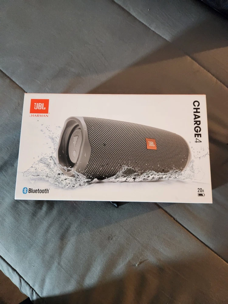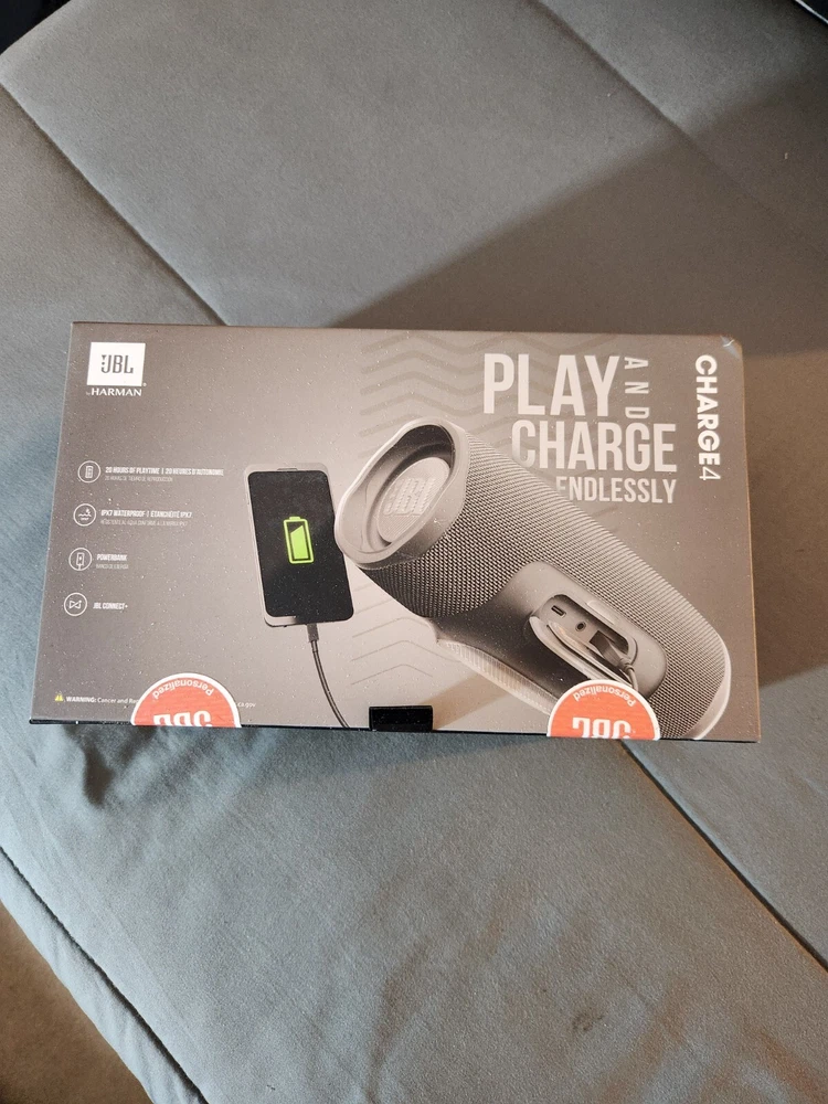 JBL Charge 4 Waterproof Portable Bluetooth Speaker in Black *Cosmetic Issues* Condition: The speaker has noticebale signs of wear as shown which do not affect functions at all - Customer Return - Used in Good condition, will have signs of handling and wear - Original packaging is not included, will ship in plain box - Guaranteed to function perfectly and include all parts Description: Brand JBL Speaker Maximum Output Power 30 Watts Frequency Response 20 KHz Connectivity Technology wireless Audio Output Mode Stereo WIRELESS BLUETOOTH STREAMING: Wirelessly connect up to 2 smartphones or tablets to the speaker and take turns enjoying powerful sound. UP TO 20 HOURS OF PLAYTIME: Built-in rechargeable Li-ion 7500mAH battery supports up to 20 hours of playtime and charges your device via USB port IPX7 WATERPROOF: Take Charge 4 to the beach or the pool without worrying about spills or even submersion in water JBLCONNECT plus Amplify your listening experience to epic levels and rock the party perfectly by wirelessly connecting more than 100 JBL Connect plus enabled speakers. DURABLE FABRIC AND RUGGED MATERIAL: The durable fabric material and rugged rubber housing allows your speaker to outlast all of your adventures JBLBASS RADIATOR: Dual passive radiators deliver powerful, ear catching JBL sound that resonates loud and clear. INCLUDED: JBL Charge 4 speaker, USB-C cable, Quick Start Guide. Item Dimensions 8.7 x 3.7 x 3.7 ( in) PLEASE NOTE: The Charge 4 does not come with a USB wall, power adaptor Powered by SixBit's eCommerce Solution Powered by SixBit's eCommerce Solution