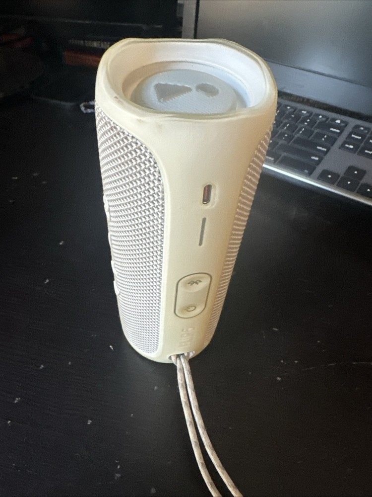 The JBL FLIP 5 Bluetooth Portable Speaker in White is a portable speaker system that is compact and easy to use. With Bluetooth connectivity, you can seamlessly stream your favorite music from your device. The sleek white design and JBL brand ensure high-quality sound and durability. The model JBL Flip 5 is a popular choice for those looking for a versatile and reliable portable speaker for on-the-go audio enjoyment.