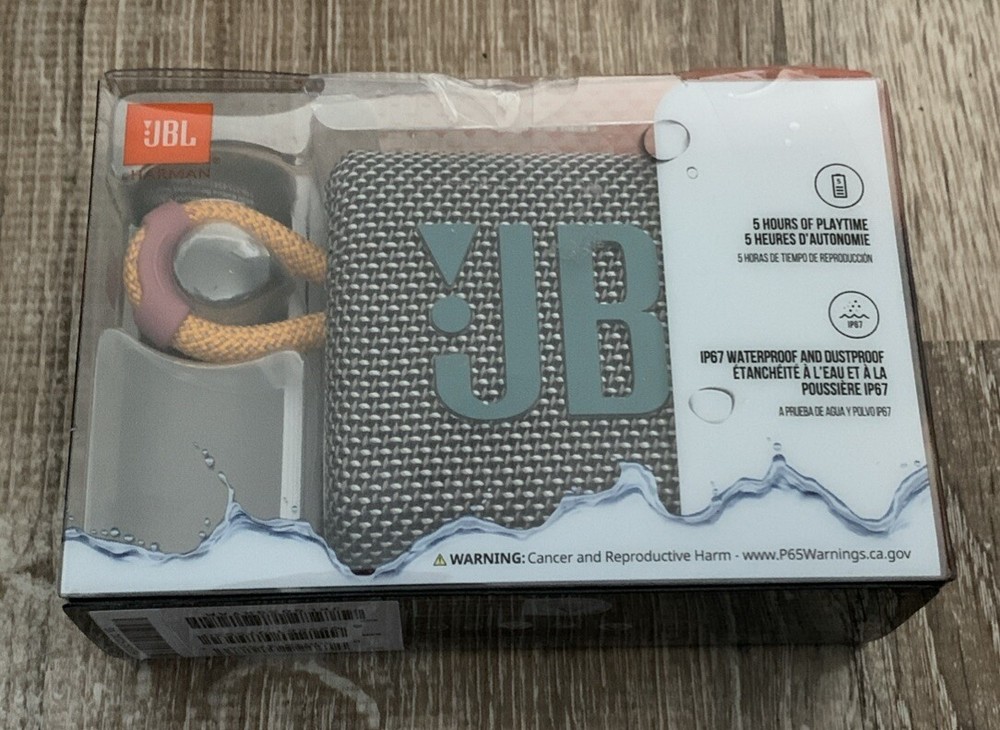 JBL GO3 Wireless Portable Waterproof & Dustproof Bluetooth Speaker Grey Pink. Shipped with USPS Ground Advantage.