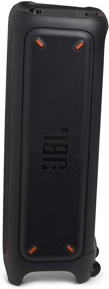 Electronic Express eBay Listing Description JBL PartyBox 1000 Portable Bluetooth Speaker with Full Panel Light Effects The JBL PartyBox 1000 is a powerful party speaker with JBL sound quality and exciting full panel light show. Just plug in your Mic or Guitar and take the stage or stream your playlist via Bluetooth or from a USB stick. The LED lit DJ and Party Band bring concert to your party! Connect two PartyBox speakers wirelessly with the TWS feature or wired from one RCA output to another RCA input. Let's get the party started! What's in the box: JBL Party Speaker Quick-Start Guide Safety Sheet AC Power Cord Air Gesture Wristband Specifications: Power Inputs: 100–240V AC Input Terminals: RCA L/R, USB port, 3.5mm Aux-in, Mic/Guitar with volume control Wireless Connectivity: Bluetooth Technology Output Terminals: RCA L/R Transducers: 1 x compression driver, 2 x 7" Mid-Range, 1 x 12" Down Firing Woofer Output Power: 1100W Frequency Response: 30Hz-20kHz (-6dB) Dimensions (WxDxH): 15.6" x 15.3" x 43.3" Weight: 76.5 lbs. Key Features: JBL Signature Sound: JBL offers unprecedented performance and an authentic audio experiences you will remember for your party! Light Shows: The full panel lighting effect creates a captivating light show to astound your crowd with a lasting visual experience. Air Gesture Wristband: Air gesture wristband brings everyone together! DJ Pad: This DJ launchpad allows you to play drums, keyboard and piano, record and loop on the fly! Mic and Guitar Inputs: Plug in your mic or guitar and take the stage. USB Playback: Pre-program your party or event with your favorite playlist from a USB thumb drive! TWS and RCA: Connect compatible speakers wirelessly via TWS (True Wireless Stereo using Bluetooth connection up to 2 party speakers) or wired via one RCA output to another. USB Charging for External Devices: A USB port on the JBL PartyBox lets you charge other USB devices right from the speaker. So you don’t need an extra charger to keep your devices powered up. Concealed Wheels: A handle and concealed wheels make it easier to transport your JBL PartyBox 1000 JBL Signature Sound JBL offers unprecedented performance and authentic audio experiences you will remember for your party! Light Shows The full panel lighting effect create a captivating light show to astound your crowd with a lasting visual experience. Air Gesture Wristband Air gesture wristband brings everyone together!