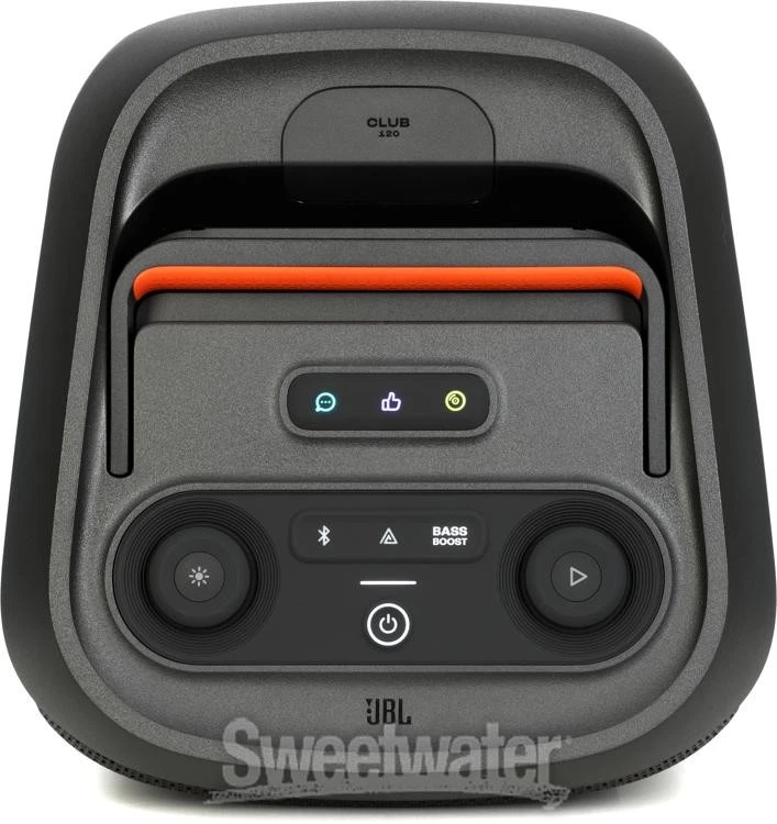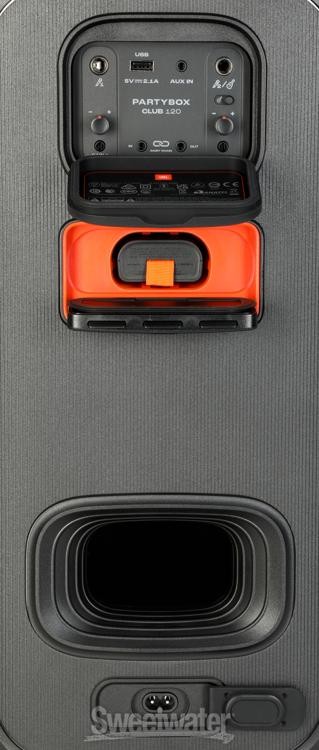 Portable 160-watt Party Power with Wireless Control Sporting a foldable handle, a superior JBL woofer and tweeter combo, and a sturdy splashproof design, the PartyBox Club 120 tackles any party or gig-to-gig situation with ease. Signature JBL sound is summoned via the speaker's 160-watt operation, supplying more than enough power for small venues, indoor and outdoor party spaces, and much more — not to mention 12 hours of continuous playtime via its swappable rechargeable battery pack. Of course, any JBL party speaker could not be complete without JBL's proprietary onboard lights show, which is entirely customizable via the free JBL PartyBox app. Finalized with a modernized AI Sound Boost, multi-speaker connectivity, and physical top-mounted controls, the PartyBox Club 120 has proven to be one of the most versatile party speakers for several Sweetwater audio enthusiasts.Endless event versatility Thanks to a developed league of top-mounted controls, the JBL PartyBox Club 120 Sweetwater is an Authorized JBL Dealer Genuine New Item Sweetwater's 2-year warranty JBL PartyBox Club 120 Bluetooth Speaker 160W Bluetooth Speaker with 2 x 5.25" Woofers, 2 x 2.25" Tweeters, Mic and Guitar Inputs, Foldable Handle, Splash-proof Construction, and Built-in Light Show Portable 160-watt Party Power with Wireless Control Sporting a foldable handle, a superior JBL woofer and tweeter combo, and a sturdy splashproof design, the PartyBox Club 120 tackles any party or gig-to-gig situation with ease. Signature JBL sound is summoned via the speaker's 160-watt operation, supplying more than enough power for small venues, indoor and outdoor party spaces, and much more — not to mention 12 hours of continuous playtime via its swappable rechargeable battery pack. Of course, any JBL party speaker could not be complete without JBL's proprietary onboard lights show, which is entirely customizable via the free JBL PartyBox app. Finalized with a modernized AI Sound Boost, multi-speaker connectivity, and physical top-mounted controls, the PartyBox Club 120 has proven to be one of the most versatile party speakers for several Sweetwater audio enthusiasts. Endless event versatility Thanks to a developed league of top-mounted controls, the JBL PartyBox Club 120 is capable of achieving solid projection in the midst of any home party, mix playback, or event space scenario. Playback controls, including Bluetooth, bass boost, and lightshow buttons feature quick access to the PartyBox Club 120's most favored features. However, control via the free JBL PartyBox app allots limitless wireless control over sound, lightshow settings, and more for seamless navigation from across the room. Topped off with onboard microphone and line input jacks, Sweetwater's JBL contingent has found impromptu jams and mid-party announcements to be an extremely easy undertaking. JBL Lifestyle PartyBox Club 120 Bluetooth Speaker Features: Bluetooth party speaker for night-long jams and event spaces Dual 5.25-inch woofer and 2.25-inch tweeter combo supplies superior JBL sound with balanced tone and projection 160-watt operation services ample power for small event spaces and in-house play Built-in lightshow for immediate environment dynamics Dual microphone and guitar inputs easily accommodate any impromptu jam session Foldable handle makes for easy transport and storage Sturdy, splashproof construction ensures peak performance in nearly any playing space Up to 12 hours of continuous playtime with swappable batteries Achieve 2 times the power with dual stereo speaker connectivity Wireless control available via the free JBL PartyBox app Specification Detail Powered Yes Total Power 160W RMS Speaker Configuration 2 x 5.25" Woofer, 2 x 2.25" Tweeter Input Types 1x 1/4" (Mic), 1x 1/4" (Mic/Instrument), 1 x 1/8" (Aux In), 1 x 1/8" (Daisy-chain In) Output Types 1 x 1/8" (Daisy Chain Out) Connection Type Bluetooth USB 1 x Type A Bluetooth v5.4 Frequency Response 40Hz-20kHz Software JBL PartyBox app Power Source Rechargeable Lithium-ion battery Battery Life Up to 12 hours per charge Enclosure Type Recycled Plastic, Splash Proof IPX4 Color Black Height 22.44" Width 11.35" Depth 11.69" Weight 24.35 lbs. RETURN INFORMATION We want you to be completely happy with your purchase from Sweetwater. If you are not satisfied with your product, you may return it for a refund of the purchase price within 30 days. If your purchase was eligible for Free Shipping, the shipping cost will be deducted from your credit or refund. Returns must be in the complete and original packaging with all accessories and complete documentation (Owner's Manual, warranty card, quick start guides, etc.), show no signs of wear or use, and include a Return Authorization number or be subject to a restocking fee.
