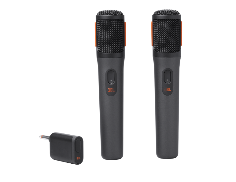 Make your good times even better with JBL PartyBox Wireless Mics. Just plug them into any JBL PartyBox, or use the dongle for the freedom of a wireless connection, and let your voice be heard. Indoors or outside, you'll sound clear and captivating on these mics specially tailored to sound amazing over any PartyBox speaker. A built-in foam pop filter minimizes any extraneous vocal sounds as you sing a duet with your best friend, and a shock mount system keeps things quiet when you're passing the mic to someone else. Up to 20 hours of play time and because you can still use a mic even while it's charging on the PartyBox's built-in power bank, the fun will last as long as the party does. Rock the house with the JBL PartyBox Wireless Mic. Opened Box condition Includes 2 microphones 1 receiver Clear voice, crisp sound The cardioid pickup pattern of these mics deliver a warm, clear, and crisp vocal sound that's designed to make everyone sound their best over any JBL PartyBox. Minimize all unwanted noise A shock mount system minimizes the sound of the mics passing from one hand to another, while a built-in pop filter eliminates any extraneous breathing sounds that you don't want to be part of your performance. Easy to use Just plug in and start singing. It's really that simple.