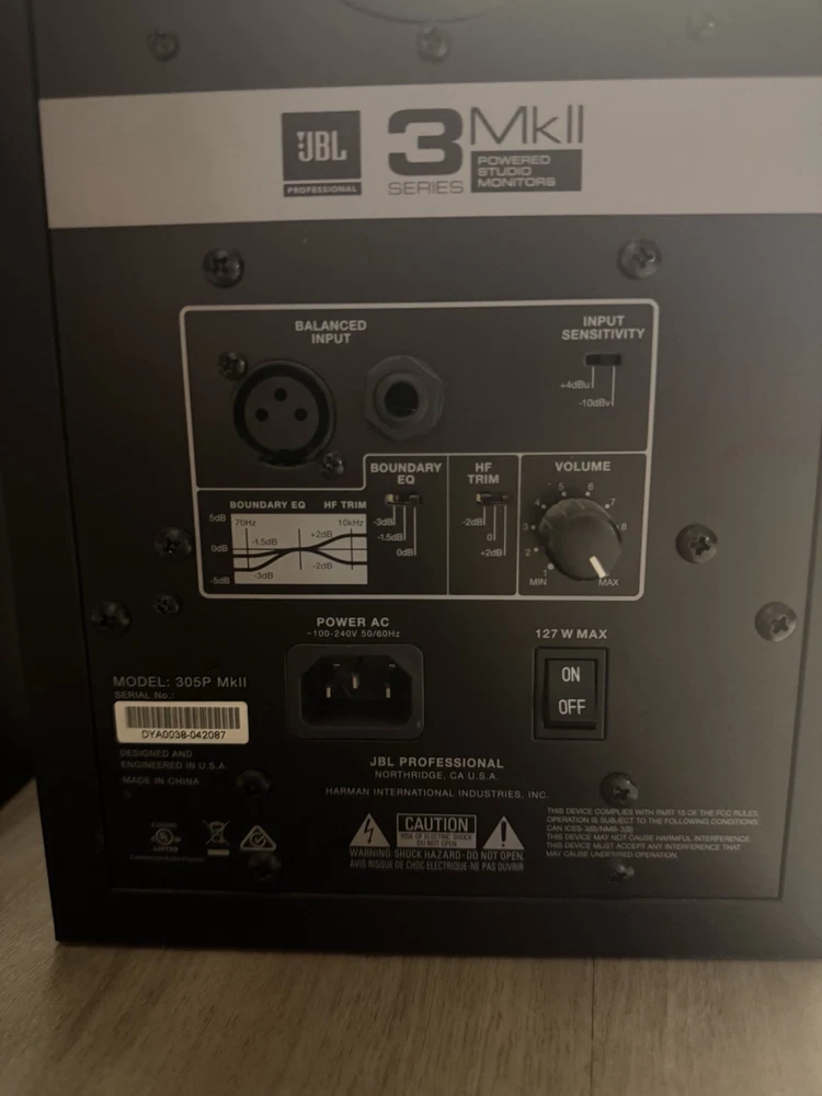 Essentially brand new, great quality speakers and amazing condition. I used them one time when I was trying to mix. Great for DJing and open mixes. No cables or wires XLR included. Just the speakers. The JBL Professional 305P MkII Powered Studio Monitors are high-quality speakers designed for professional audio applications. These wired monitors offer a sleek black design and feature both TRS and XLR audio inputs, making them versatile for various equipment. With an amplified design and a maximum power of 127W RMS, these studio monitors deliver top-notch sound quality for mixing and mastering music or audio content. Made with a durable blend of plastic and metal, these rectangular-shaped speakers are a reliable choice for musicians, sound engineers, and producers looking for precision audio playback.