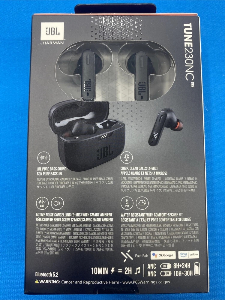 MPN: T230NCTWSBAM Suitable For: Studio Monitoring, Live Monitoring Frequency Range: 20 Hz – 20 kHz Color: Black Model: JBL Tune 230NC TWS Form Factor: In-Ear Only Brand: JBL Features: Surround Sound, Wireless, Replaceable Ear Tips, Volume Limitation, Waterproof, Noise Isolation, Ambient Sound Mode, Built-In On/Off Switch, Stereo, Touch Control, Active Noise Cancellation, Water-Resistant, Call functions, Playback Controls, Microphone Mute Button, Volume Control, Rechargeable Battery, Noise Cancellation, Extra Bass, Sweat-Proof, Built-in Microphone Connectivity: Bluetooth, USB-C Number of Earpieces: Double Wireless Technology: Bluetooth Type: Earbud (In Ear) Microphone Type: Built-In Impedance: 16 ohm