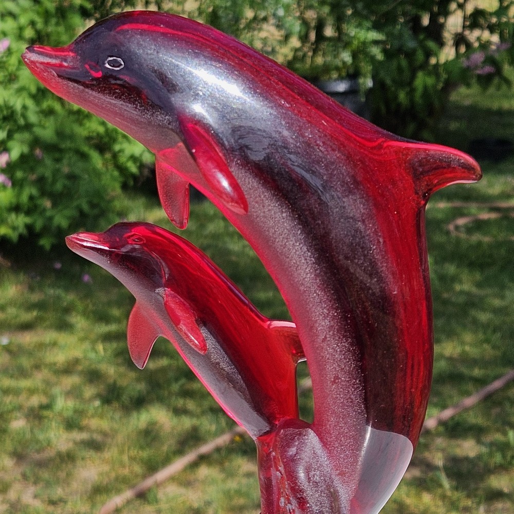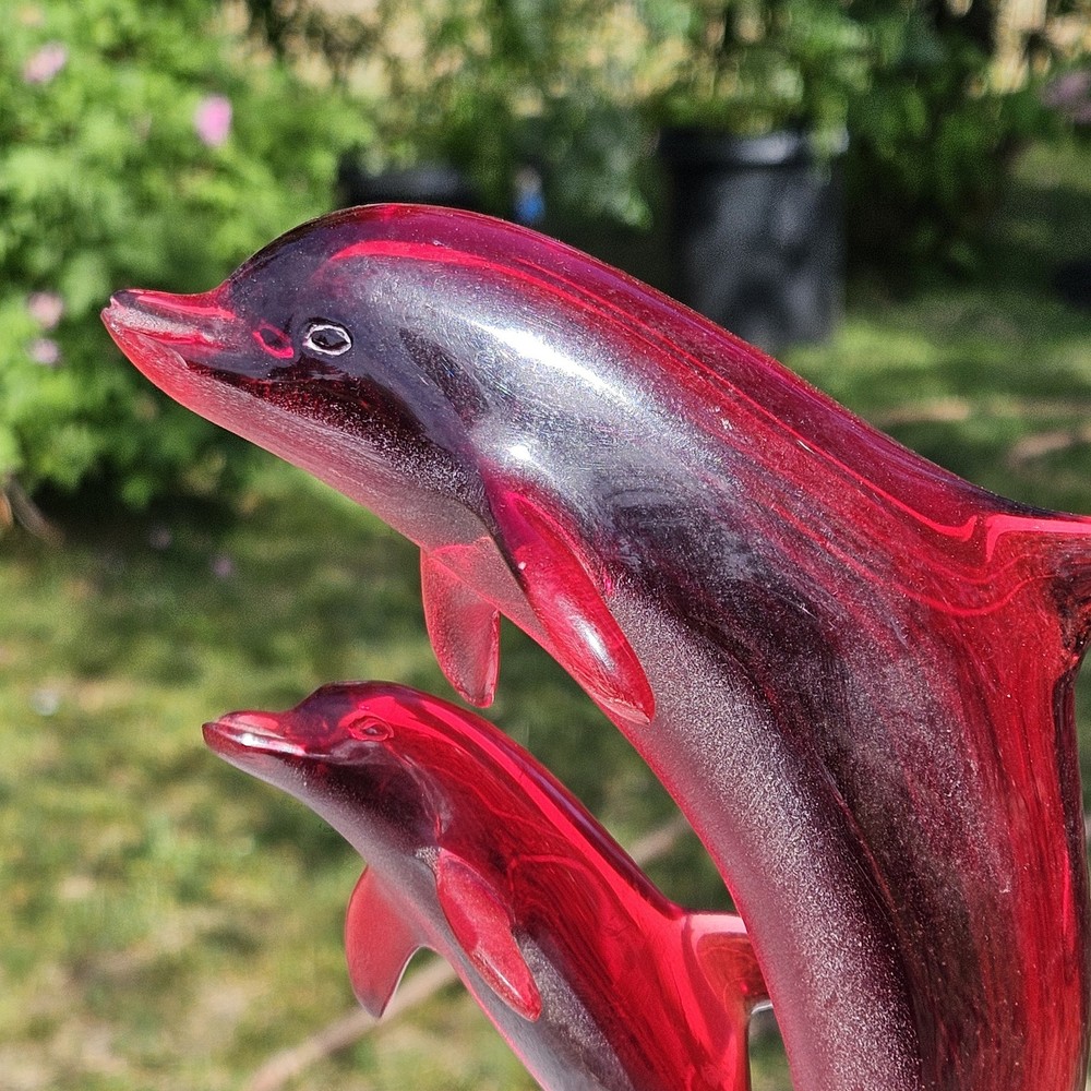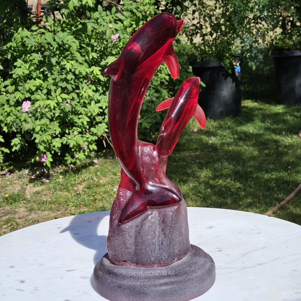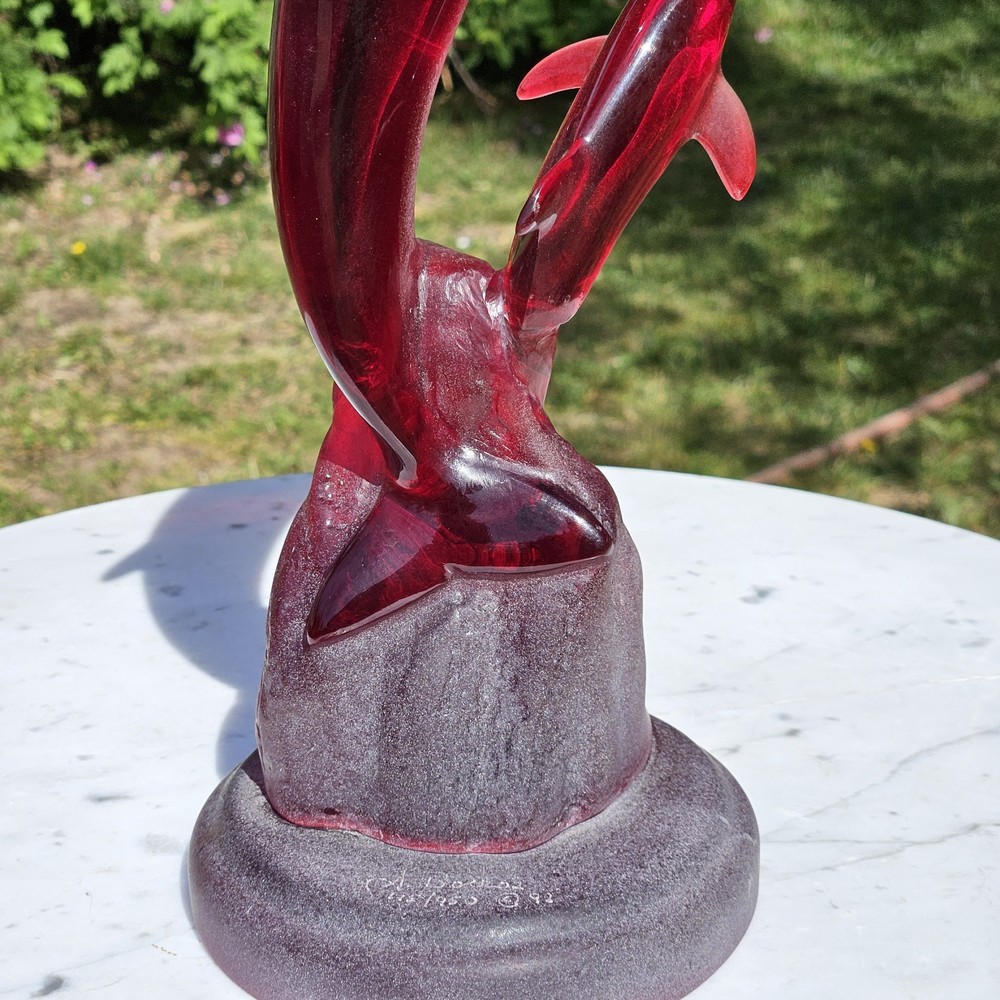 Signed, dated, numbered. Beautiful deep red Hard to find with mommy and baby dolphins. Usually, they are single. 11" tall Collectable See photos for description