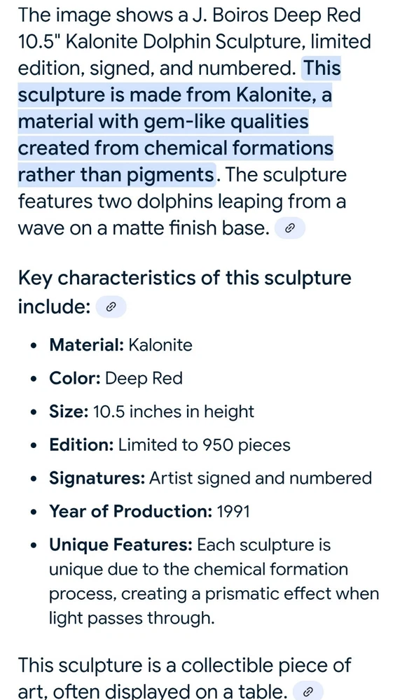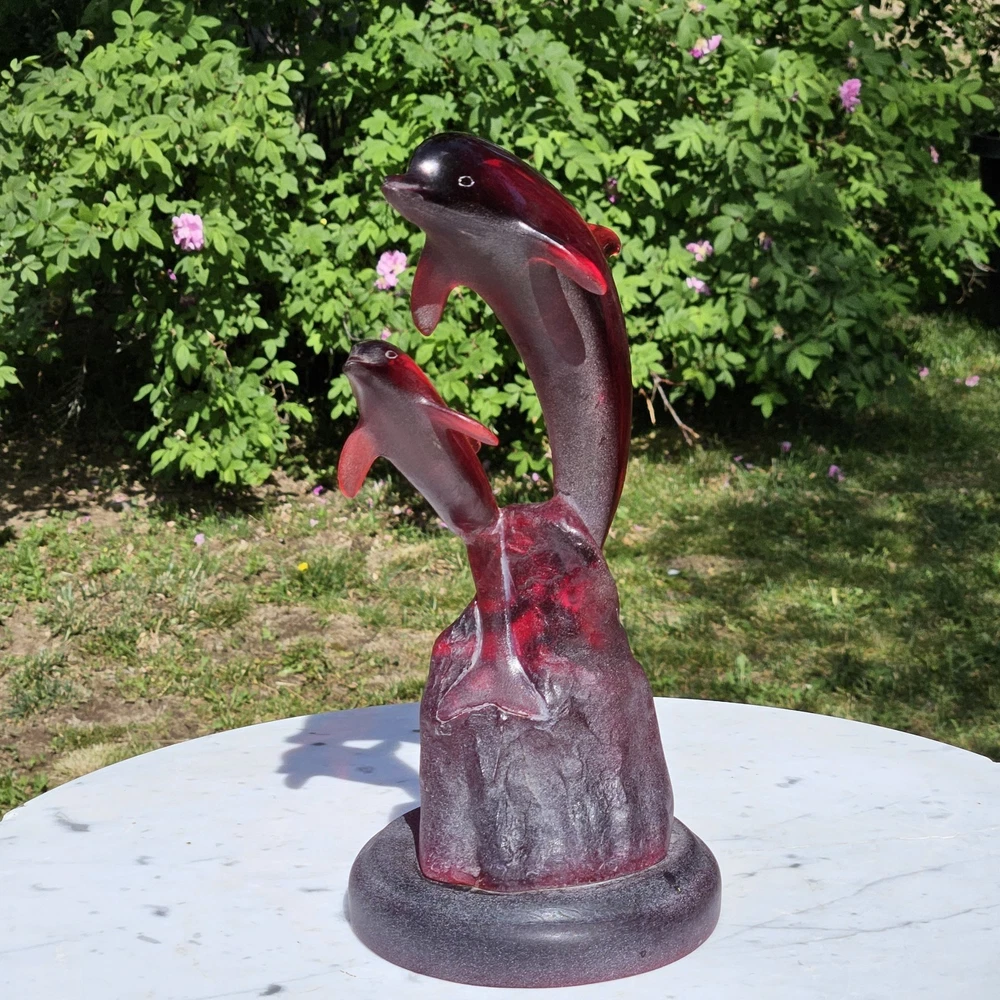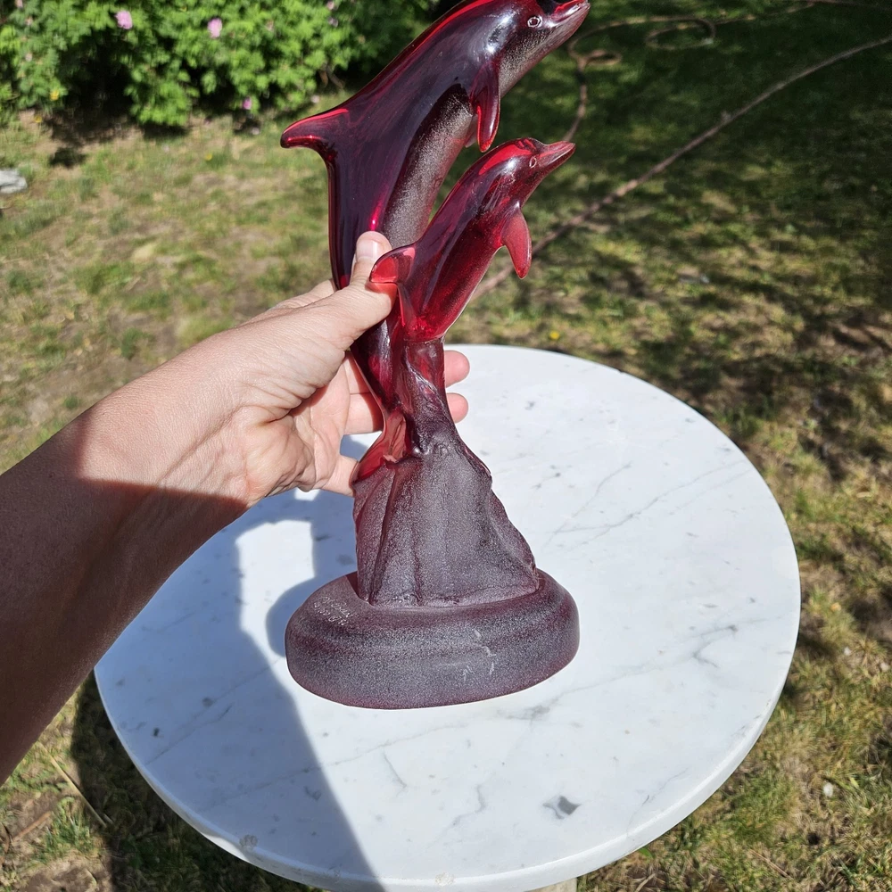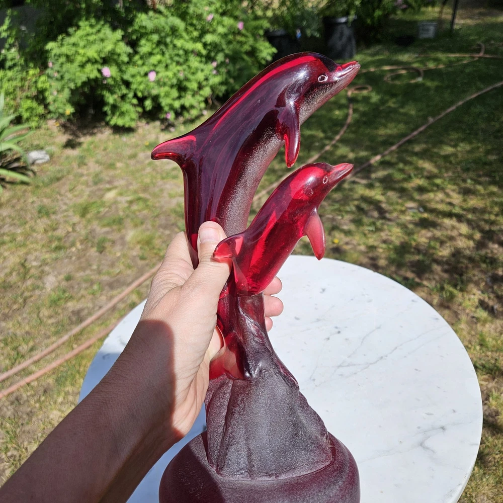 Signed, dated, numbered. Beautiful deep red Hard to find with mommy and baby dolphins. Usually, they are single. 11" tall Collectable See photos for description