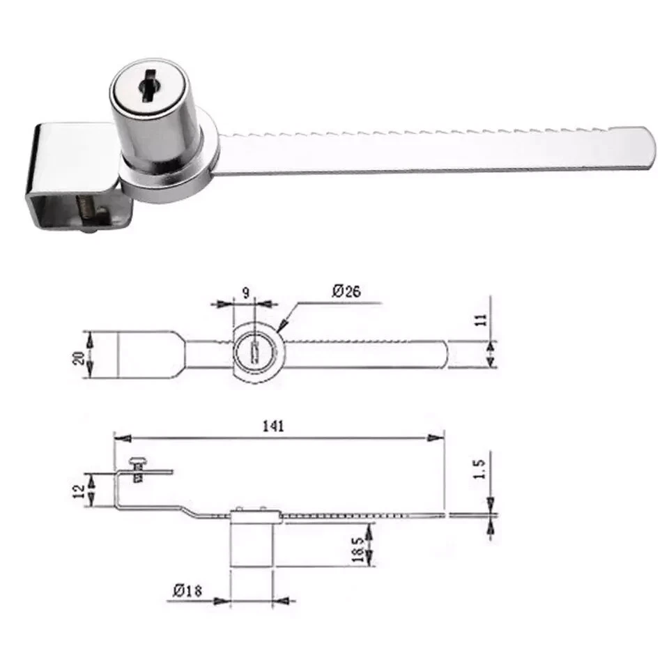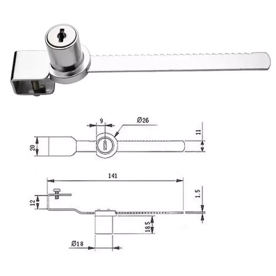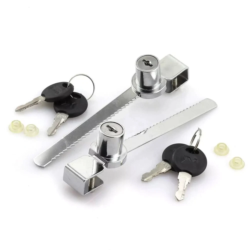 JCBIZ 2-Pack Glass Lock Terrarium Showcase Display Case Cabinet Sliding Glass Push Door Locks Furniture Hardware Universal Key Type Sawtooth Lock ✓ Free 30 Day Returns ✓ Free Shipping Type: 2pcs Showcase Sliding Glass Door Lock (Each Lock come with 2 keys), Length: 141mm; Max Width: 20mm; Min Width: 11mm; Height: 12mm; Thickness: 1.5mm; Cylinder: 18x18.5mm (DxH) Fine Workmanship: Made of high quality zinc alloy, strengthen and thickened lock head, E-coating processed surface, durable and practical to use. Use: Consist of metal bar, locking barrel (mechanism) and 2 keys. Fits Up to 4-6mm Thick tempered glass. Easy to Install: No drilling required, slide the bar between the panes of glass and fix it in place with screw, then slide the lock barrel onto the bar and ratchet in place. Adjustable screw on back for different thickness of glass. Application: Suitable for most of glass cabinet and show case, good used for Glass Locks, Sliding Glass Door Locks, Showcase Cabinet locks, Cabinet Locks etc. Feature: Type: Sliding Glass Door Lock Model: 328 Universal Key (Keys Alike) Material: Zinc Alloy Length: 141mm Max Width: 20mm Min Width: 11mm Height: 12mm Thickness: 1.5mm Cylinder: 18x18.5mm (DxH) Fine Workmanship: Made of high quality zinc alloy, strengthen and thickened lock head, E-coating processed surface, durable and practical to use. Use: Consist of metal bar, locking barrel (mechanism) and 2 keys. Fits Up to 4-6mm Thick tempered glass. Easy to Install: No drilling required, slide the bar between the panes of glass and fix it in place with screw, then slide the lock barrel onto the bar and ratchet in place. Adjustable screw on back for different thickness of glass. Application: Suitable for most of glass cabinet and show case, good used for Glass Locks, Sliding Glass Door Locks, Showcase Cabinet locks, Cabinet Locks etc. Tip: "Universal Key" Type: For example,you buy a lot of universal type lock, you only need one key can open all the locks. Package Include: 2pcs Showcase Sliding Glass Door Lock(Each Lock come with 2 keys)