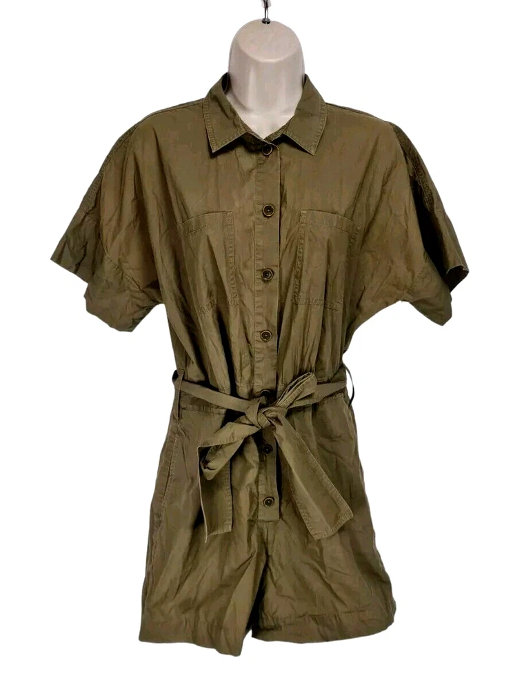 J.CREW Women Short Romper Jumpsuit Sz 4 Olive Green Button Up Short Sleeve 192P