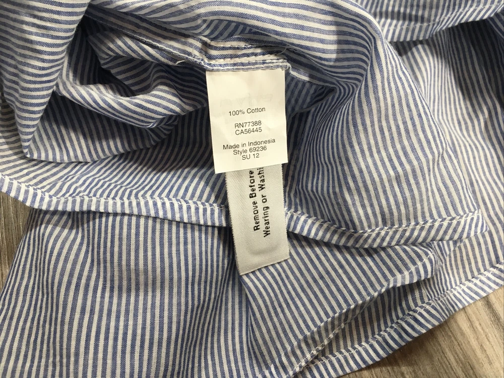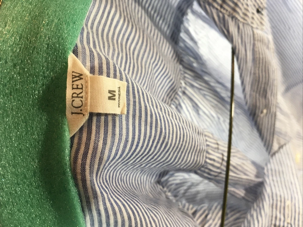 J.Crew Shirt Stripes Blue And White Long Sleeve Size M 100% Cotton. Condition is "Pre-owned". Shipped with USPS. Please review pictures carefully for cosmetic condition. Approximate measurements in inches while laying flat: Armpit to armpit: 24 Sleeve from start at top: 25.5 Width at bottom: 25 Front length from top of collar to hem: 25 Back from top of collar @ back to hem: 29.5 ** buttons are only midway down and not all the way *c1