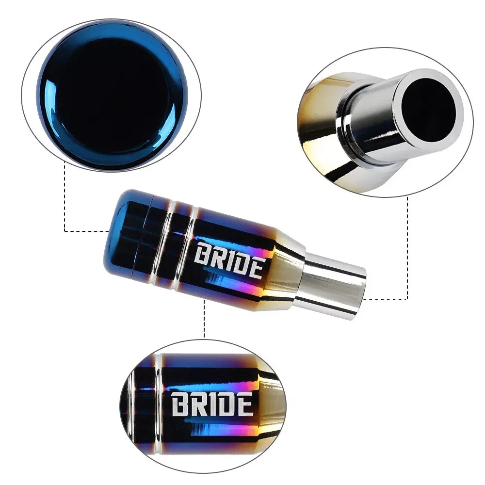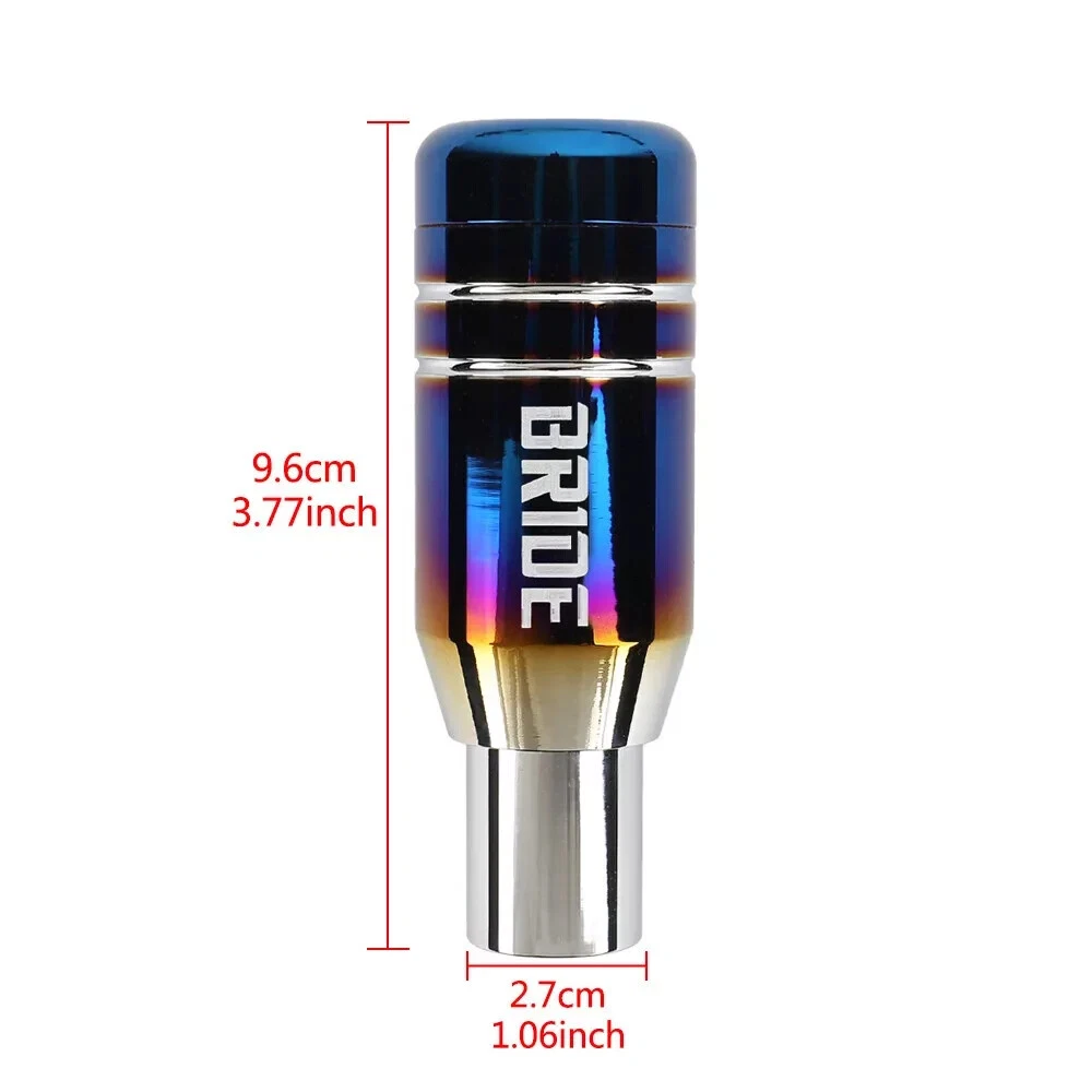 DESCRIPTION 100% Brand New and High Quality , Never Used or Installed Material : Made of High Quality Aluminum Color : Neo Chrome Size : 9.6cm x 3.2cm x 2cm ( As picture show ) This BRIDE Gear Shift Knob ONLY Fits Automatic Transmission WITH Press Down Release Button It is a great automobile accessory, which is made of High Quality Aluminum with light weight carbon steel Its unique Design Provides an Elegant and Fashionable Driving Environment Easy to install and disassemble. If you can't install, please find a professional installation Direct OE Fitment or Replacement Comes With 3 Adapters Size ( 8M - 10M - 12M ) Instructions: 1/ Remove existing shift knob 2/ Select correct adapter and install over shifter 3/ Slide shift knob on to shaft , make sure release button works 4/ Tighten down with 3 set screws * Professional Installer is Highly Recommended (No Instruction Included) Package includes: 1 x Automatic Shift Knob 3 x adapters (Length: 3.8 cm ; Inside Diameter: 0.8 /1.0/ 1.2 /1.4 cm ; Outside Diameter: 1.5 cm) 3 x black screws (Size: 0.5 cm ; diameter: 0.4 cm) 1 x wrench (Size: 5.1*1.7 cm; Opposite Sides: 2 mm)