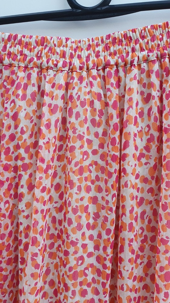 JDY Maxi Skirt With Half Elasticated Waistband Jenify size small new tags red orange multi Elasticated waistband for a comfortable fit Lined Made from 100% polyester chiffon, offering a lightweight and sheer quality with a nice drape Lined with polyester for a non-transparent look Care instructions: Cool iron, do not bleach, do not dry clean, do not tumble dry, line dry, maximum temperature 30C (mild process) length from top of waistband to hem 40" all measurements approx