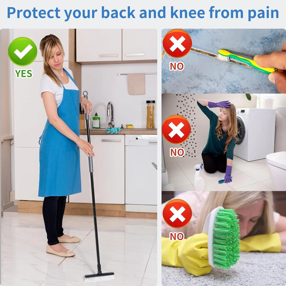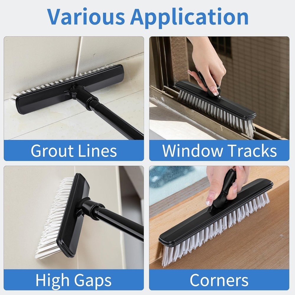 JEHONN 2 Pack Grout Brush with Long Handle 50 Inches, Swivel Floor Black Product Details Brand: JEHONN Color: Black Handle Material: Plastic Specific Uses For Product: Floor Product Dimensions: 17.24"L x 3.85"W x 2.28"H Material: Plastic, Metal Special Feature: Extendable, Hanging Hole Shape: Rectangular Included Components: Handle Surface Recommendation: Floor Number of Items: 1 Item Firmness Description: Hard Item Weight: 1.3 Pounds Manufacturer: JEHONN Unit Count: 1.0 Count Item Weight: 1.34 pounds Item model number: GB-01 2 Pcs V-Shape Grout Cleaning Brush: JEHONN V-shape stiff bristles grout scrub brush fits perfectly into grout lines, gaps, corners and window track. Tired of cleaning tough stains in gaps with toothbrush? This brush would be your best cleaning partner 180°Rotating Head: This grout brush for tile floors features with a 180° swivel grout scrubber head, which allows you to scrub away grimes and dirt from different angle with ease. Package comes with 2 packs of tile brush heads, you can replace for use 50 inches Long Handle: JEHONN shower broom includes 3 metal extension poles, can be extended from 20” to 50”. So you can stand upright for comfortable scrubbing instead of bending over to clean. It helps protect your waist and back from pains Multiple Application: This grout brush cleaner with long handle can tackle grimes and stubborn stains on grout, corners, gaps, window track, baseboards from kitchen, bathroom, shower, hallways, deck, patio, walls Bathroom Scrub Brush: JEHONN has committed to cleaning products for more than 10 years. Want to get a sparkingly clean house? Try this grout scrubber brush