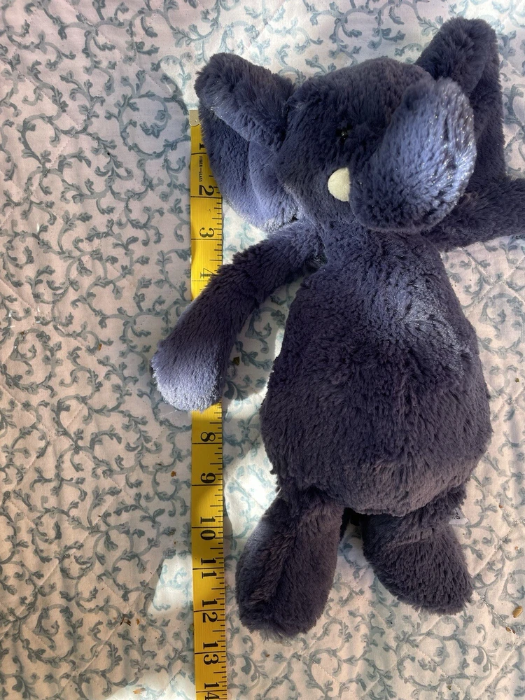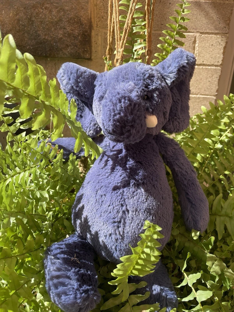 Soft and sweet JellyCat blue elephant plush. In good condition and very lovable.