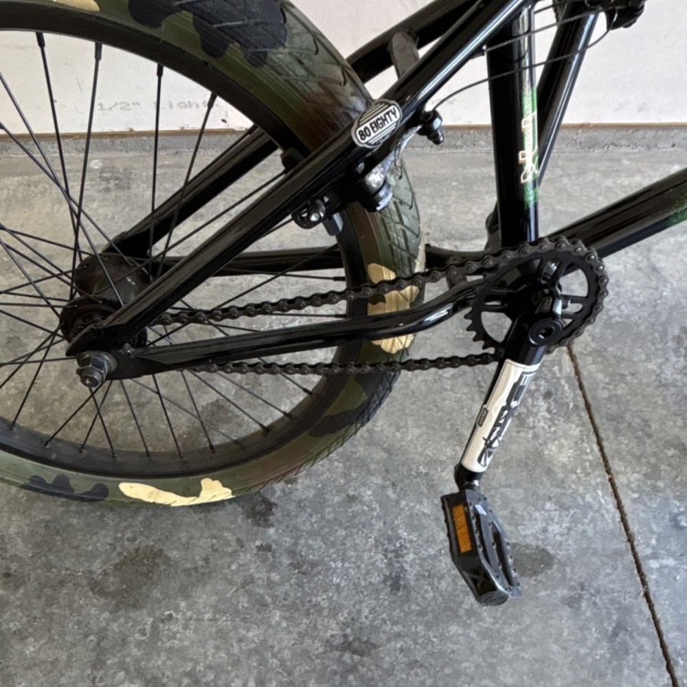 Number of Speeds: 1 Speed Brake Type: U-Brake Wheel Size: 20 in Suspension Type: No Suspension Tire Type: Clincher Tires Brand: JET BIKES Model: 80 EIGHTY Color: Black, Camouflage Bike Type: BMX Bike Department: Unisex Adults Handlebar Type: BMX Bar