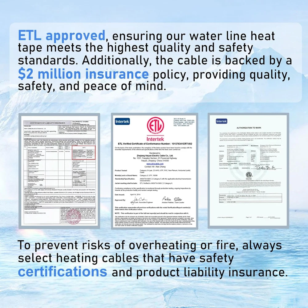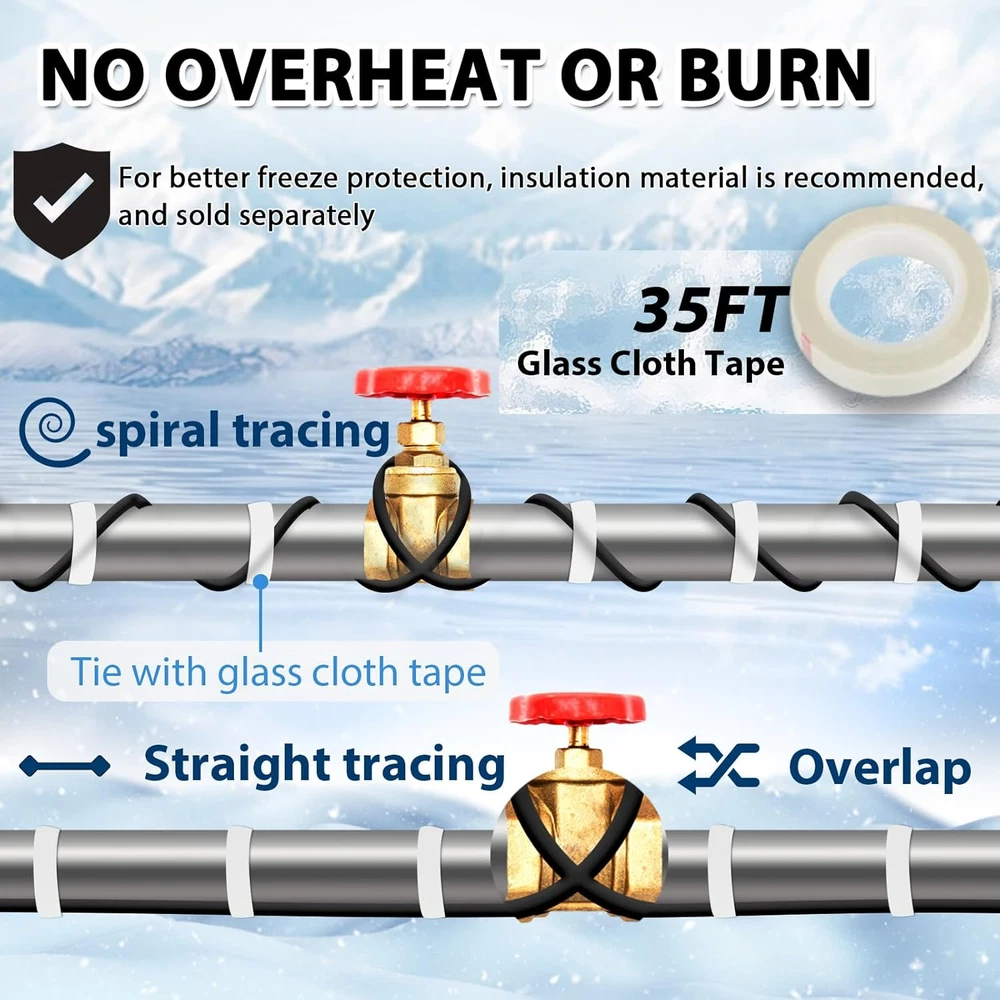 Menu Other Items Feedbacks About Us Contact Us Add To Favorites JHSF 40Ft Self-Regulating Heat Cable for Pipe Freeze Protection, Energy-Saving, Pipe Heat Tape for Metal and Plastic Home Supply Pipes, Keeps Water Flowing at -40°F, ETL Listed, 120V [Pipe Freeze Protection] Pipe Heating Cable, 3 W/ft, energy-efficient design. Safeguard your pipes and reduce electricity costs. Maintains water flow in temperatures as low as -40°F (-40°C). Includes a 2 Ft power cord and heating cable options ranging from 3 Ft to 160 Ft. This product is backed by up to USD 2 million in product liability insurance, providing you with added peace of mind and security in your purchase. [Compatible with Different Pipe Materials] Our water pipe heat cable is versatile, suitable for various pipe types. It works effectively with both metal and plastic water pipes, delivering reliable freeze protection across different materials. Whether it's copper, PVC, or stainless steel, our cable guarantees exceptional performance, ensuring your pipes remain secure and operational even in extreme weather conditions. [ETL Certified Safety] Our Self-Regulating Heating Cable is ETL certified, ensuring top-notch quality and safety. This certification confirms that our water line heat tape meets rigorous industry standards for performance and safety. Rest assured in the reliability of our pipe heat cables, providing exceptional freeze protection for your water pipes. Don't settle for less—choose a product that excels in both quality and safety. [High-Tech Self-regulating Heating Technology] Our water pipe heat tape features self-regulating technology, automatically adjusting heating power in response to ambient conditions, ensuring it never overheats or causes burns. This intelligent functionality optimizes energy usage, ensuring efficient and dependable pipe freeze protection. [Efficient Integrated Thermostat] Our pipe heat trace features a built-in thermostat, activating at 38℉(3℃) and deactivating at 50℉(10℃). This intelligent system regulates power output, operating only when needed for optimal energy efficiency. Rest assured, your water pipes are protected from freezing while minimizing energy usage. [Easy Installation and Versatile Length Range] Our pipe heat tape is designed for easy installation, with pre-installed features for user convenience. Whether straight, spiral, or overlap, it adapts effortlessly to your needs. Available in lengths from 3ft to 160ft, it offers versatile options for various applications, from residential to industrial. Product Description 1 Self-Regulating Tech 2 Automatic Thermostat 3 ETL Approved 1 Length Selection 2 Test Before Installation 3 Four Steps to Install HEATIT Pipe Freeze Protection Series You can Choose Add to Cart Add to Cart Add to Cart Add to Cart Add to Cart Add to Cart Add to Cart Customer Reviews 4.5 out of 5 stars 3,921 4.5 out of 5 stars 3,921 4.4 out of 5 stars 44 5.0 out of 5 stars 2 4.6 out of 5 stars 3,063 4.5 out of 5 stars 656 4.6 out of 5 stars 408 Price $22.99 $ 22 . 99 $29.99 $ 29 . 99 $28.99 $ 28 . 99 $13.99 $ 13 . 99 $14.99 $ 14 . 99 $34.89 $ 34 . 89 $45.99 $ 45 . 99 Output @ 50°F(10°C) 3W/FT 5W/FT 5W/FT 7W/FT 7W/FT 5W/FT 5W/FT Build-in Thermostat ✔ ✔ ✘ ✔ ✔ ✘ ✘ Application Pipe Freeze-protection Pipe Freeze-protection Pipe Protection/Roof De-icing Pipe Freeze-protection Pipe Freeze-protection Pipe Protection/Roof De-icing Pipe Protection/Roof De-icing Cable Structure Self regulating Self regulating Self regulating Regular (Constant wattage) Regular (Constant wattage) Self regulating Self regulating Certification ETL ETL ETL ETL,CSA ETL,CSA ETL ETL Cold Lead 2 Ft with Light Indicator Plug 3 Ft with Light Indicator Plug 6 Ft with Light Indicator Plug 3 Ft with Light Indicator Plug 2 Ft with Light Indicator Plug 3 Ft with Light Indicator Plug 3 Ft with Light Indicator Plug Heated Cable Length 3FT to 120FT 3FT to 160FT 2FT to 130FT 3FT to 30FT 3FT to 80FT 6FT to 150FT 6FT to 150FT Spiral,Wrap or Cross ✔ ✔ ✔ ✘ ✘ ✔ ✔ NON-water-filled Pipes ✔ ✔ ✔ ✘ ✘ ✔ ✔ Dimension Width: 0.32"| Thickness: 0.22" Width: 0.32"| Thickness: 0.22" Width: 0.32"| Thickness: 0.22" Width: 0.49"| Thickness: 0.2" Width: 0.31"| Thickness: 0.21" Width: 0.32"| Thickness: 0.22" Width: 0.3"| Thickness: 0.2" Item Specification Item model number 40 ft Part Number 6947881590234 Style 40 ft Mounting Type Ceiling Mount Item Package Quantity 1 Color Black Material Type 3W/FT Product Dimensions 22 x 4 x 4 inches Material 3W/FT Country of Origin China Batteries Required? No Item Weight 2.2 pounds Batteries Included? No Special Features Durable Size 40 ft Is Discontinued By Manufacturer No Included Components 1 Dimensions Shipping Returns Additional Info Product Dimensions: 4.0 inches x 22.0 inches x 4.0 inches. Weight: 2.2 lb Fast shipping is very important for us. Our standard shipping service is FREE. Your order will be shipped within 1-3 business days upon full payment received. Most items are delivered within 3-5 business days, however, please allow 3-10 business days. We are shipping only to USA. We only ship to the confirmed Paypal address. We reserve the right to cancel any order for any reason at any time. We are not responsible for undeliverable addresses. We offer a 30 day return policy from checkout winning date. Your satisfaction is guaranteed! If for any reason you are unhappy with your item, just return it within 30 days for a full refund, minus shipping cost. Please contact us prior to initiating a return so that we can issue you a refund authorization. Items defective upon receipt must be packaged in their retail packaging as if new and returned with a detailed description of the problem. Return shipping fees are not refundable. We reserve the right to decline any returns if the above guidelines are not followed. All of our items, unless otherwise stated, will only run on 120 volts. Please check to make sure your country complies with these speci