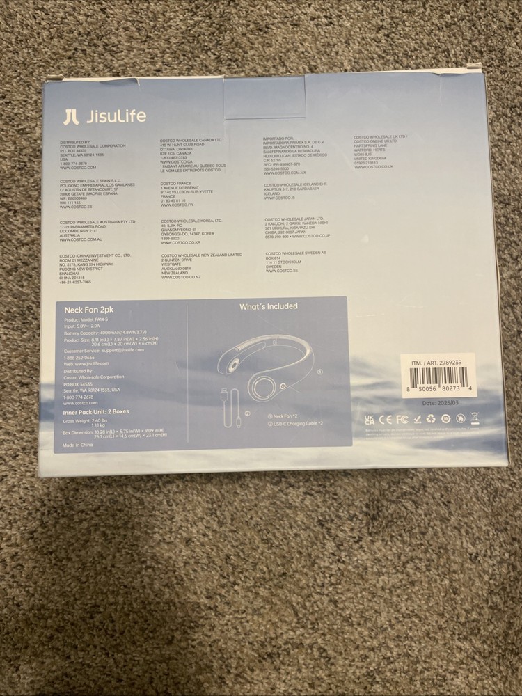 JISULIFE 1789239 Portable Personal Rechargeable Neck Fan, White, 2-Pack