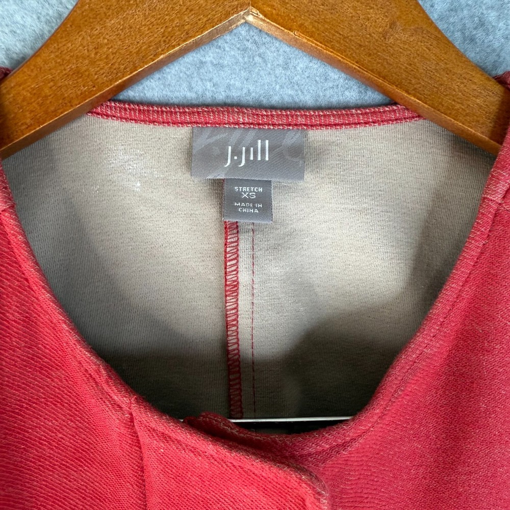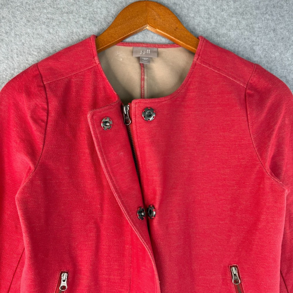 J.Jill Moto Jacket Women's XS Heathered Red Cotton Stretch Long Sleeve Full Zip Description J.Jill Moto Jacket Women's XS Heathered Red Cotton Stretch Long Sleeve Full Zip . View measurements below Pit to pit 16.5" Length 21" Sleeve 20" Shoulder to shoulder 15" SKU F27 Product Detail • Brand : J.Jill • Department: Women's • Color : Heathered Red • Type: Jacket Please message me if you have any questions. Please check above for measurements.