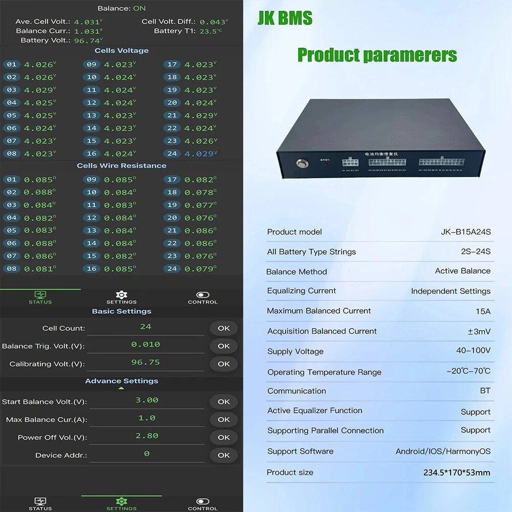 SAFE & SECURE SHOPPING 100% SATISFACTION GUARANTEED FAST SHIPPING JK BMS 2S-24S Li-ion LiFePo4 Battery 15A Smart Active Balancer Equalizer Board Product Description Description: 1【App Connection】 Connection password is 1234. 2.15A 2S/4S/8S/14S/16S/24S Battery Active Balancer Real-time, active, energy transfer equalization, after the balance, the inter-cell pressure difference ≤ 3mV 3.Support 2S to 24S battery packs. 4.Single cell voltage collection range: 1V ~ 5V, accuracy: ± 3mV. 5.Support all pool types such as : Li-ion, Lipo, Lifepo4, LTO, super capacitors and other batteries. 6.The balance current is set independently in the range of 0.1~1A/2A/5A/10A, independent of the cell voltage difference. 7.Support Bluetooth communication, equipped with mobile APP, real-time view of battery status. 8.Equilibrium line resistance detection, abnormal contact failure is found in advance. 9.Power supply range: 40V~ 100V. 10.Low voltage shutdown function to prevent battery damage. 11.Package Size :43*37*12cm 12.Super self-protection function, any equalization of the equalization line will not burn the equalizer 13.Super self protection function, it will not burn down the balancer even if equalizer wire arbitrarily connected 14.Scan the QR code on the product packaging box to see all the documentation, or directly visit this website: https://active.clewm.net/BApbC0?qrurl=http://c3.clewm.net/BApbC0>ype=1&key=2b3d4162439e9136f87858ef91f1c7ae0d92b1e929 Password For App:1234. Package includes: 1*15A Battery Active Balancer Payment Shipping Returns Contact US Payment Payment must be completed within 5 days. If you have any problems about payment, please contact us via ebay message. Shipping We only ship to confirmed ebay Order addresses. Please comfirm that your Order address is in line with your shipping address. Please kindly note that the combined shipping is not provided because the shipping fee is calculated by weight. Also, the each additional item means exactly the the same color and size. It takes about 7-15 working days to US; about 10-30 working days to other countries. Transit time may be a little delayed because of the bad weather and customs inspection. If you do not receive your item within 30 working days since payment finished, please contact us immediately for further assistance. Returns Items can be returned for exchange or refund within 30 days from the date you receive your merchandise. We are not responsible for any purchase after this 30-day period. Return shipping is the responsibility of buyer unless the return is a result of our mistake (i.e., your receive the wrong item). We will pay for shipping replacement back to you if an exchange is requested. Contact US Customer satisfaction is very important to us and our feedback rating reflects this satisfaction. If you have any questions, Our customer service staffs welcome feel free to contact us by EBAY message box. We strive to answer all questions and resolve any problems as quickly as possible. Copyright © 2022 Tongtool