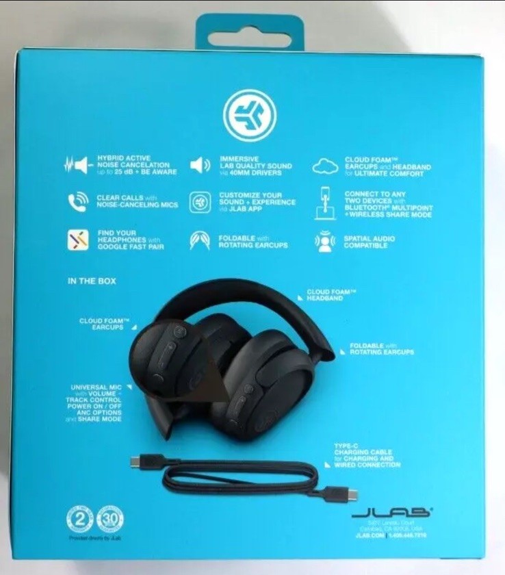 gtin13: 0810119071255 Cable Length: 3ft Color: Gray, Green, Black UPC: 0810119071255 Suitable For: Live Monitoring, DJ, Studio Monitoring Connectivity: USB-C, 2.5mm Jack, Bluetooth, 3.5mm Jack Year Manufactured: 2020s MPN: HBJLUXANCRGPH62 Microphone Type: Built-In Model: 1100 Series Frequency Range: 30+ feet Form Factor: Headband Impedance: 16 ohm Band: HF GTIN: 0810119071255 Type: Ear-Cup (Over the Ear) Brand: JLab Number of Earpieces: Double Driver Size: 40 mm Wireless Technology: Bluetooth Features: Active Noise Cancellation, Adjustable Headband, Waterproof, Rechargeable Battery, Wireless, Noise Cancellation, Touch Control, Call functions, Bluetooth Multi-point, Volume Control, Volume Limitation, Ambient Sound Mode, Rotating Ear Cups, Foldable, Built-in Microphone, Built-In On/Off Switch