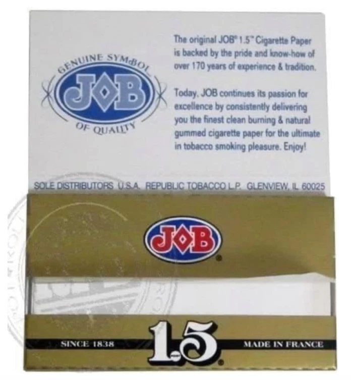 โจ JOB 1.5 Cigarette Rolling Papers 12Pack 24Sheets Pure Rice French Made Clean Burn Elevate your rolling experience with these classic French-crafted papers! ๐ฟ This convenient pack includes 12 booklets of JOB 1.5 size rolling papers, with each booklet containing 24 premium sheets โ providing a total of 288 rolling papers for extended use. Meticulously crafted from 100% pure rice paper with natural gum adhesive, these papers represent the perfect balance of French tradition and modern manufacturing technology โ delivering the smooth, clean burn that JOB has been famous for since its inception. Premium Quality: ๐พ 100% pure rice paper for superior flavor preservation ๐ฏ Natural gum adhesive ensures perfect sealing ๐ซ๐ท Authentic French manufacturing tradition ๐ฅ Engineered for smooth, even burning characteristics ๐จ Minimal ash production for cleaner experience Practical Package: ๐ฆ Includes 12 individual booklets for convenient storage ๐ 1.5 size offers versatile rolling options ๐งฎ 24 papers per booklet totaling 288 sheets ๐ง Consistent quality across every sheet ๐ญ High-technology manufacturing process Pro Tip: ๐ก For optimal results with these premium papers, use a consistent amount of material and distribute it evenly before rolling. The natural gum adhesive requires just the right amount of moisture โ lightly moisten rather than oversaturate for the perfect seal that won't unstick during smoking. Explore our complete selection of premium rolling accessories designed to enhance your experience! Our customer service team is always ready to help you find the perfect products for your specific preferences.