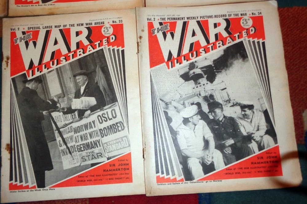 Y ou are bidding on A Job Lot of Ten vintage World War Two s of ‘War Illustrated’ Magazine War Illustrated needs no introduction to anyone interested in World War Two. In addition to contemporary photographs of the war in all its elements – all of which are accompanied by descriptive script, the magazine contains intelligent articles on all aspects of the war. One particularly interesting section is the 'I Was There' section, which consists of Eye-Witness accounts of Various incidents in the war INDIVIDUAL ISSUES WOULD BE £2.59 Postage. Please message for details From Back L-R: With short summary of articles etc. Vol 2 – No. 25, February 23rd 1940 Russian Tanks and destruction in Finland – Cutaway Diagram: First German Aircraft Carrier 'Graf Zeppelin' – The Growing force of Commonwealth, Empire Troops – U-Boats – The B.E.F. In Snow on Western Front -British Aeroplane Recognition Chart – Indians in Britain Rally to the Colours (Please see scan) – Heroism of Norfolk Regiment, Lieutenant Everitt – Britains A.R.P. - Vol 2 – No. 26, March 1st 1940 H.M.S. Exeter” and Battle of River Plate - Russian atrocities in Finland – The Western Front – Nazi Slave-Ship, The 'Altmark' - H.M.S. 'Repulse' – Australianand ANZAC troops - ' Mary Bull' and other Female Munitions workers - Vol 2 – No. 27, March 8th 1940 H.M.S. Exeter” and “ Ajax ”– Finland's Bloody War – Sweden – The B.E.F. In France inc Dorsetshire Regiment – Cutaway Diagram 'How the Big Guns of a Battleship are Controlled – Tales f Heroism at the 'Graf Spee' (Individual) – Army Railways – Chart of 72 Nazi Air Raids in Six Months - “I was the Younget \survivor of H.M.S. 'Daring'. - NAAFI for Leave men in London Vol 2 – No. 28, March 15th 1940 Royal navy Motor Boats (H.M.M.T.B.) - Finland ravaged by Russia - First Honours to the Norfolk Regiment – The Auxiliary Pioneer Corps in France – The Durha Light Infantry – Cutaway Diagram German and British Bombers – RAF Convoy Guards – Medal Winners (25 photos and details – British Aircraft Recongnition No 2 - Vol 2 – No. 29, March 22nd 1940 T he Royal Welch Fusiliers in France – Atrocities in Finland – Scots and Welsh Troops in France ( Welsh Guards – Gordon Highlanders) – Frech Free Corps – Denmark on the edge of War – Nazi Villainy at Sea (Sinking of the British and Italian Civilian ships “Gretafield', “Imperial Transport” Amelio Lauro”, Astros. - H.M.S. “Achilles” - ANZAC Twon in Egypt – British Cavalru in Palestine – The Home Guard – R.A.F. Bombers and Crews – Horros of Warsaw/Poland under the Nazis Vol 2 – No. 30, March 29th 1940 New Zealand Troops – Finland – Return of the B.E.F.- 'Famous Regiments at the Front': The Royal Irish Fusiliers – Forward Zone with Nazi Soldiers - Norway 'On Fringe of War' – Conditions in Soldiers Hospitals – The battle of River Plate – H.M.S. “Achilles ” - Indian Air Force – The Armed Trawler HMS 'Northern Spray ' - Vol 2 – No. 31, April 5th 1940 F inland - 'Famous Regiments at the Front': The Lincolnshire Regiment – The B.E.F. - German Photos from the Front – British and German POWs – Rumania on the Fringes of War – Allied Armies in the Middle East – New Zealand Welcomes its men of HMS “Achilles” - Anti-Hitler Cartoons – RAF Raids on Scapa and Sylt -The North Sea “Kipper Patrol” - RNLI Lifeboats and Crews (Cromer, Norfolk) - Vol 2 – No. 32, April 12th 1940 British Submarines – Finland - 'Famous Regiments at the Front': The east Yorkshire Regiment – The Cheshire regiment – The Balkans – On the Fringes of war: Hungary – New Zealand's “Cobber” E. J. Kain, Air Ace and others – The Northumberland Fusilier Motorcycle Sidecar Units - British Aeroplane Recognition Chart – Royal Marines – H.M.S> 'Ark Roya' and 'Graf Zpee' – Northern Ireland's War Effort – N.A.A.F.I. - Vol 2 – No. 33, April 19th 1940 H itler Invades Norway – Denmark Submits to the Nazis - 'Famous Regiments at the Front': The Loyal North Lancashire Regiment- Nazi Atrocities in Warsaw – London in Wartime – Double Page Map. 'New Areas of North West Europe – Polish Submarines “The Wilk”, “The Orzel” - U-Boats – Anti-Aircraft Units – Cutaway Diagram of French 'Pocket' Submarines – Egyptian Camel Corps (With Indian troops – Sunderland Flying Boats – 'My Spitfore was the First to be Shot Down – Free Czech Troops in France Vol 2 – No. 34, April 26th 1940 H.M.S. 'Warspite' – British Forces in Norway – HMS 'Rodney' – Narvik – Denmark under Nazi Occupation – On the Fringes of War: Bulgaria – HMS 'Gurkha' ( Eye Witness Report - The Fleet Air Arm - The magazines have some light wear and buffeting commensurate with this age, mainly in the form of disintegrating staplesr- apart from which they are in good general condition with no rips, tears, writing or other major marks. Happy bidding! Postage: £4.19 NB: We have lots of these and will gladly combine postage. We are a small family business, who wish to give our customers satisfaction. To this end, we would be obliged if you could read the following. Postal Charges: We will always combine postage on compatible items Postage Schedule: We will always do our best to post within one working day Thanks for your time: Jim & Donna D: 1939-1940: Nos 25 - 34
