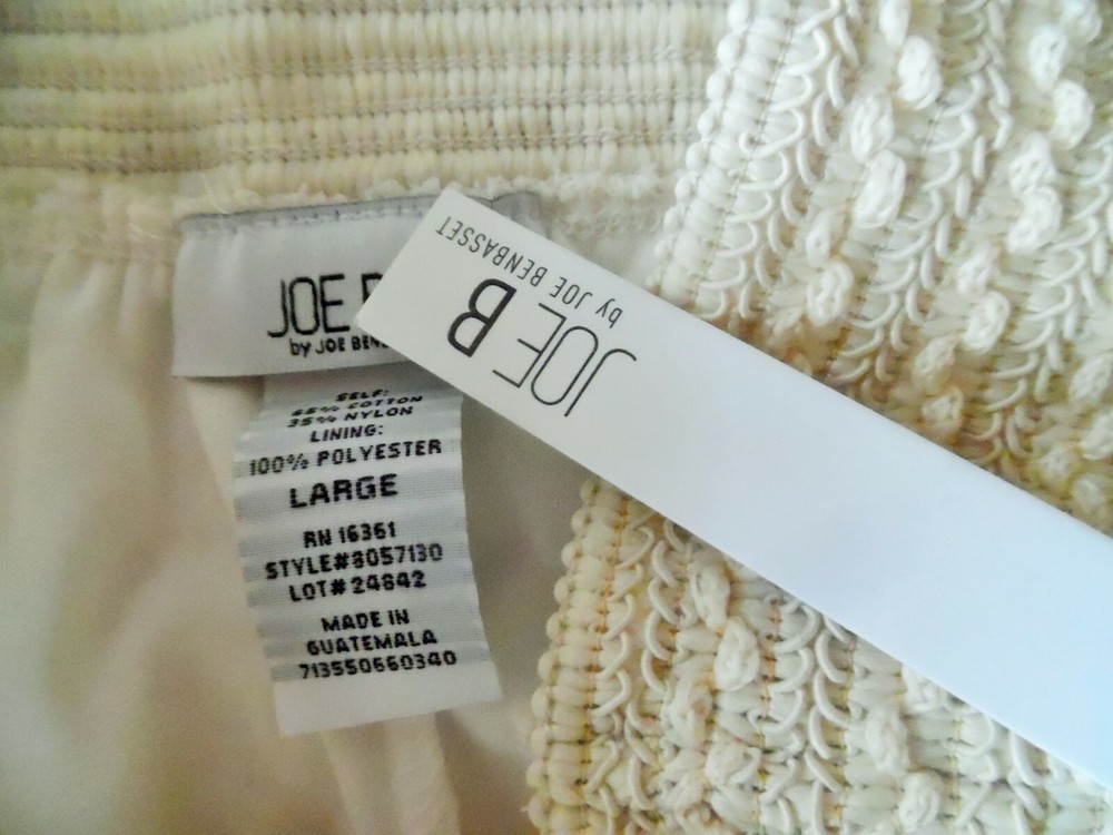 JOE B BY JOE BENBASSET IVORY MESH OVERLAY SKIRT SIZE L NWT Waist: 30" Length: 17" AT Combined Shipment: USA : Highest item shipping cost + $3.00. for each subsequent item.Or, you can purchase as many items as you choose and pay the flat rate of $18.75 for your Priority Mail Large Flat Rate Box which covers your entire order. Please read the disclaimer below. INTERNATIONAL SHIPMENTS: Highest item shipping cost + $5. for each subsequent item. Please read the disclaimer below. DISCLAIMER on Shipping Costs: Our intention is to keep our shipping costs as low as possible. However, depending on the item purchased (weight) and the destination, shipping rates can vary; especially 30 Day?s No Questions Asked Returns Policy: Your satisfaction is very important to us. We have a 30 days NO QUESTIONS ASKED returns policy. The item must be returned in the condition in which it was purchased. If there are labels/tags they should not be removed. If they are, the item will be sent back to you. ANY SHIPPING COSTS WILL NOT BE REFUNDED. BOTH WAYS, receiving and any returns. Please contact us for the return shipping address and authorization. ALL COMMUNICATIONS MUST BE IN WRITING & TAKE PLACE THROUGH THE EBAY SITE ONLY. No private direct email correspondence. A customer care rep. will respond to you within 24 hrs (Mon-Fri). Once we have received the merchandise and inspected it, please allow 72 hours for a refund to be issued. NO See my other listings for more great items! We accept PAYPAL. Also we have a virtual terminal with PayPal through which we can accept Visa, MasterCard, Amex, and Discover. If you do not have a PayPal account, it takes virtually minutes to open International shipments: PLEASE DO NOT PAY until we determine your shipping costs. Most of our items also have an International Flat-Rate. Although, if due to the destination or the weight we are unable to honor the rate mentioned in the item?s listing, we will cancel your order and leave you positive feedback. Usually we use the US Postal Service. The best international rate for an international shipment is First Class (up to 4 lbs.)If your items exceed 4 lbs. we may pack them into two separate packages (and notify you of this).You still are eligible to take advantage of the combined shipping rates, even if we have packed them into two separate packages. The fees for packaging, shipping, insurance, Customs Duty Charges on international shipments are all the responsibility of the Buyer and are not included in the purchase price. If the item(s) are gifts, we could indicate ?GIFT? on the customs form so you would avoid paying more on duty.