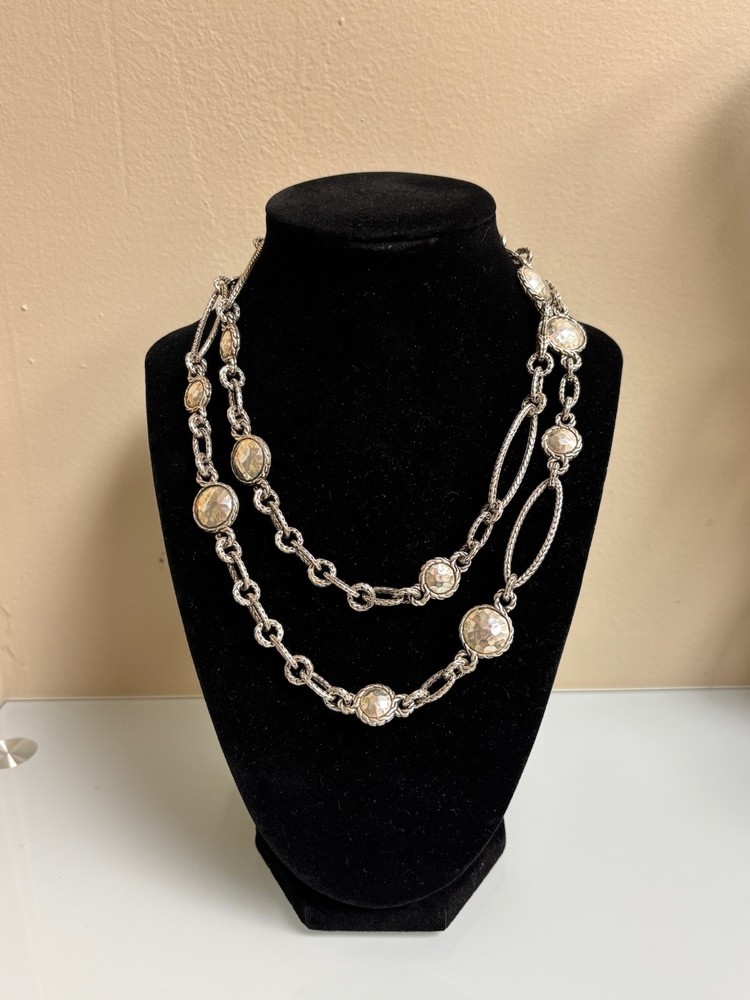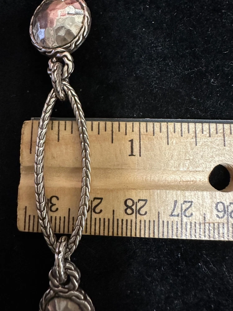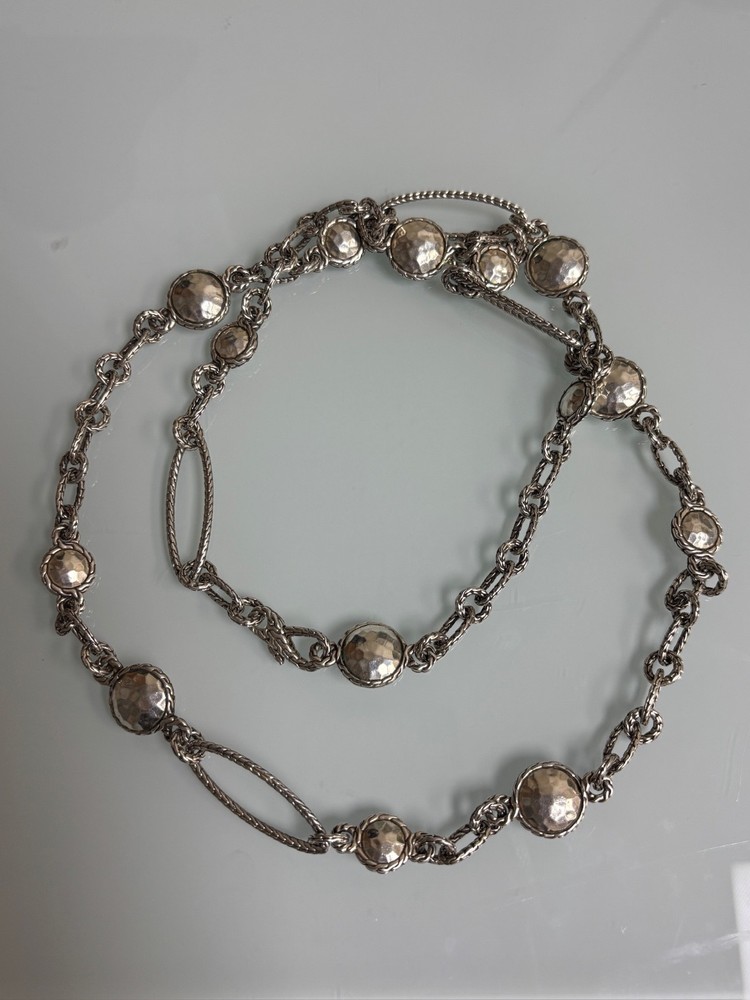 JOHN HARDY STERLING SILVER DOT LINK NECKLACE IN EXCELLENT PRE-OWNED CONDITION, THERE IS VERY LIGHT WEAR TO THIS PIECE. IT MAKES A STATEMENT WORN LONG AT 36” OR DOUBLED. PLEASE VIEW ALL PHOTOS.