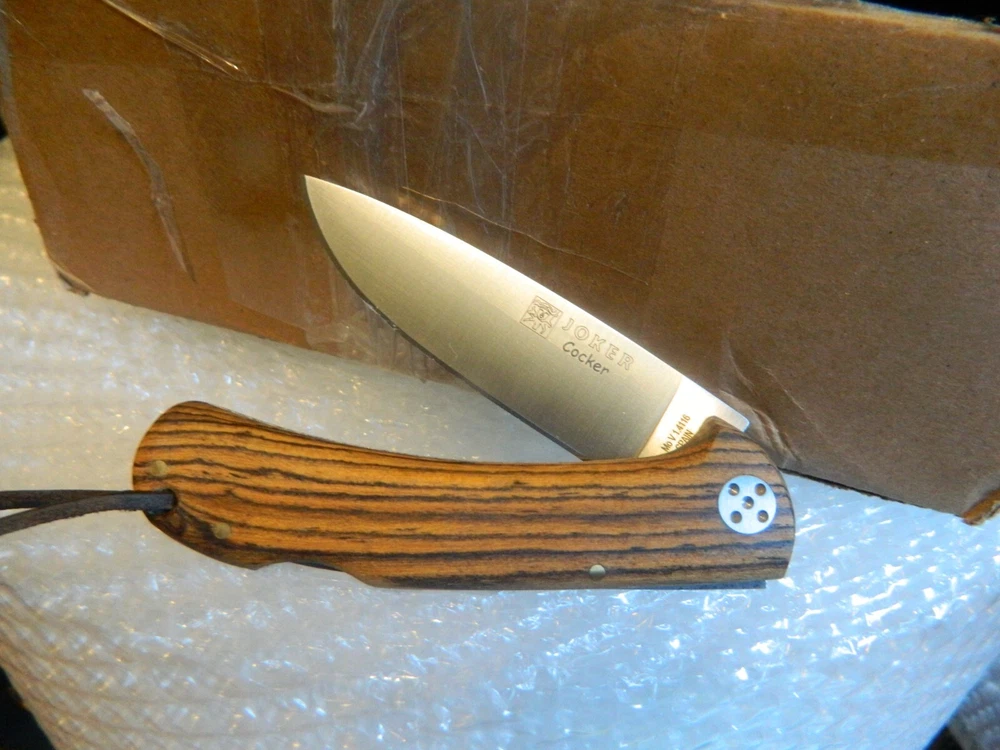 JOKER CUTLERY, Brings you a Locking Folder called the *Cocker* Model # NB-134, Weight 4.2oz. Handle is Bocote Wood that is nice and strong has awesome grain that looks great. The Frame is stainless steel along with the Blade MoV 1.4116 The Blade is a Drop Point style and it has great snap when closing. There are three brass rivets and a five shooter rivet. Plus a Lanyard Hole with a leather lanyard tied for carrying. Made in Spain for 2024, this Cocker is one more of Joker's sporting cutlery Hand Crafted. Features: 4.5" (11.43cm) closed. 3.25" (8.26cm) satin finish 1.4116 stainless blade. Bocote wood handle. Lanyard hole. Boxed. Please view all of the pictures to see these brand new pocket knives, you will see each and every piece of this NB-134 Locking Folder. We will give you $$$$$$$$$$$$$$ FREE SHIPPING $$$$$$$$$$$$$$$$$ WE THANK YOU AND GOD BLESS YOU,- STAY SAFE. by adding my eBay Store to your Favorites, . - Sign up and receive our emails, why SALES that is the only email we will ever send to you. We are always trying to get different knives into your hands, so by saving you some money maybe you will try out a new brand. Plus every listing we have is put on sale from the highest to the lowest priced items, and lastly many times we put knives that there are only 1 or 2 left in our stock by receiving our email you will get first shot at these items, Thank you Greg