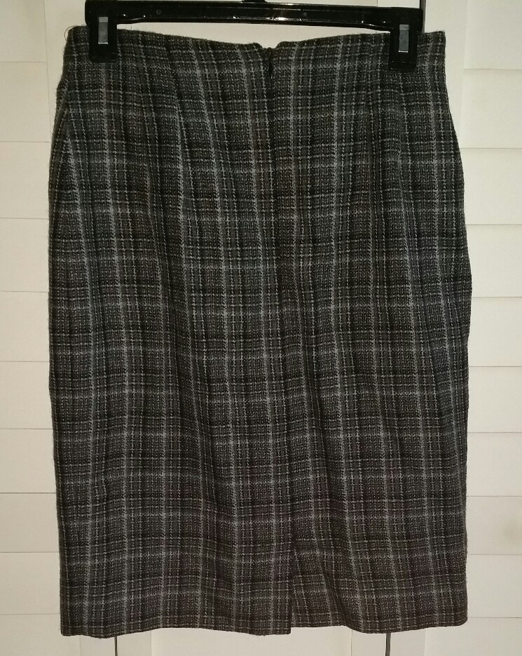 JONES NEW YORK GRAY BLACK PLAID WOOL PENCIL SKIRT SIZE 4 S SMALL